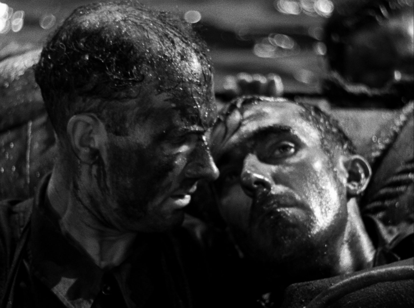 Sort of an anthology film, In Which We Serve chronicles the genesis and possible final moments of the H.M.S. Torrin, a British destroyer whose final military surviving passengers are first seen finding salvation with a life raft. Shorty (Mills), Hardy (Miles), and Captain Kinross (Coward) each recall their lives at home and see how they wound up defending the crown against the Germans, whose enemy planes could strike from above at any time. Much of Coward's screenplay was based on the real experiences of his friend Lord Mountbatten, and the attention to detail here really carries it above the ranks of its cinematic colleagues. A skilled editor at the time, Lean makes the transition to director with ease and pulls off a major, stirring achievement even many decades
