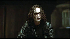 Set in one of those perpetually dark, rainy cities, The Crow begins with the murder of musician Eric Draven (Lee) and his fiancee, Shelly, on Devil's Night, October 30. The perpetrators are Top Dollar (Michael Wincott) and his motley crew of criminal henchmen, including T-Bird (The Warriors' David Patrick Kelly) and Grange (Tony Todd). Albrecht (Ernie Hudson), one of the investigating officers, tries to help the dead couple's young friend, Darla (Anna Levine), cope with the tragedy. One year later, a crow from the netherworld summons Eric from the grave to avenge the evil deed, and he dons black and white stage make up as well as a black body suit before embarking on his violent quest for retribution. Seemingly impervious to physical harm, he picks off his enemies one by one while grieving for his lost love and maintaining some semblance of contact with the friends he left behind.