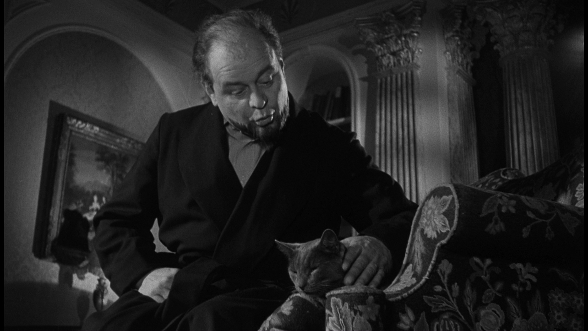 which has appeared on numerous public domain compilations. The first Blu-ray release appeared in France from Wild Side in 2013 (under the evocative title Rendez-vous avec la peur), featuring a 1.66:1 transfer of the uncut and U.S. versions with zero extras but packaged with a very hefty scholarly book in French only. It's unlikely that anyone will ever top the 2018 two-disc Blu-ray edition from Indicator, one of the most lavish treatments of a single genre film you're likely to see. Along with being loaded with extras, it contains multiple versions of the film reflecting its various running times and aspect ratios. Disc one features the uncut Night of the Demon version in both 1.66:1 and the more commonly projected 1.75:1 aspect ratios, along with the full U.S. Curse of the Demon reissue version that played theaters in the early '00s, here with the same 1.75:1/1.66:1 choices. (Due to the lack of a BFI restoration card and variations in the main titles, it runs slightly shorter at 95m22s). Seamless branching is used so each 1.75 and 1.66:1 version looks the same; the former is darker and moodier looking (and, as mentioned, is sourced from a BFI 2013 restoration); the 1.75:1 has a bit of extra vertical info while the 1.66:1 swaps out that amount for more on the top and bottom, so try both and see which one you prefer. The English DTS-HD MA mono audio for all of the variations sounds excellent, with optional English SDH subtitles. The sole extra on disc one is a new audio commentary by Tony Earnshaw, author of Beating the Devil: The Making of Night of the Demon. (Good luck finding a copy.) It's a superb, beautifully informative track from start to finish as he covers the strong conflict over the depiction of the actual monster (including some claims that get debunked here), the involvement of blacklisted writer Cy Endfield, the evolution of Joanna's character in various script drafts, the humorous elements that were gradually whittled away during production, and the casting of all the principal roles.