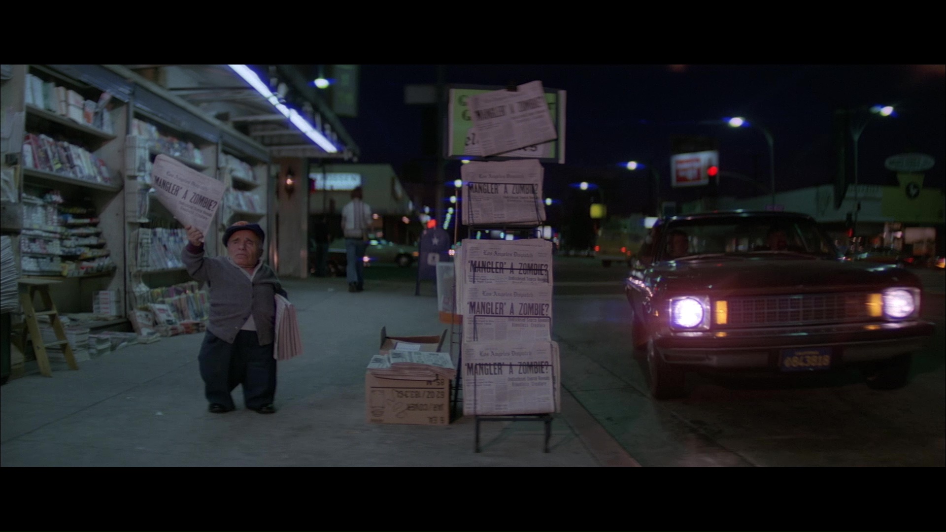 35mm print (with very crackly audio), the trailer, and a new Scorpion Releasing-produced featurette with Cardos (13m32s) about the project's genesis. The film also has an audio commentary with Cardos moderated by Scott Spiegel and Scorpion's Walt Olsen, recorded next to what sounds like a loud air conditioner.