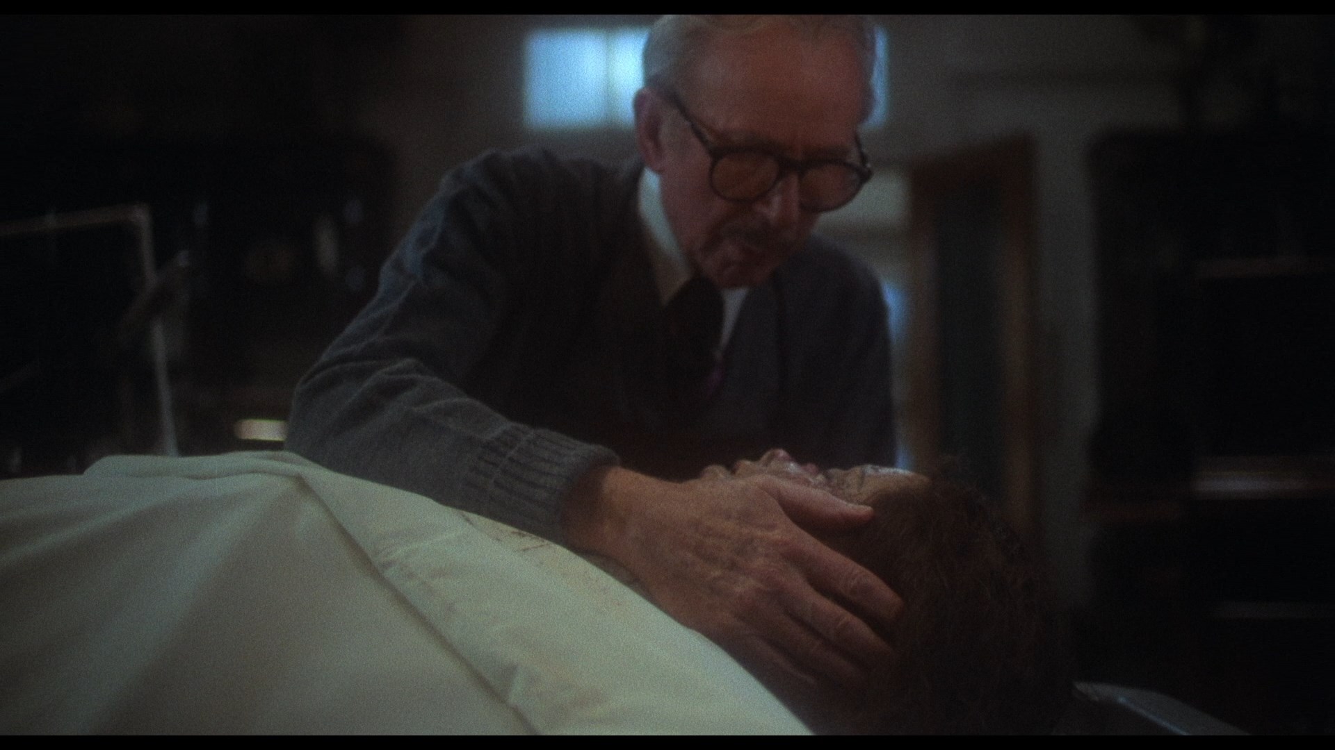 In 2021, Blue Underground finally brought the film to UHD as a three-disc edition (available with three different slipcover designs including a great lenticular version of the needle scene) also containing a remastered Blu-ray and, finally available for the first time ever in any format, Renzetti's magnificent score on CD in its entirety. The new scan is listed as a new 4K 16-bit scan from the 35mm IP, so of course the big question is, how does it look? In a word, spectacular, especially if you're familiar with the challenges posed by this film. The most obvious differences here are more image info visible in the frame and a more balanced color scheme that's less green than before; in motion the grain is also handled wonderfully here with a fine, natural texture that shows just how far technology has come in just over a decade. The UHD sweetens the deal not only with higher resolution over the Blu-ray but with the benefit of Dolby Vision HDR, which brings out even more nuances in the colors and really helps those darker night scenes in particular sing like never before. Just bear in mind that this is a film that makes frequent use of diffusion effects and even filters over the camera in some scenes, and the results here are very satisfying indeed. (Frame grabs in the body of this review are from the 2021 Blu-ray; comparison grabs between the two Blu-rays can be seen at the bottom.) Audio is