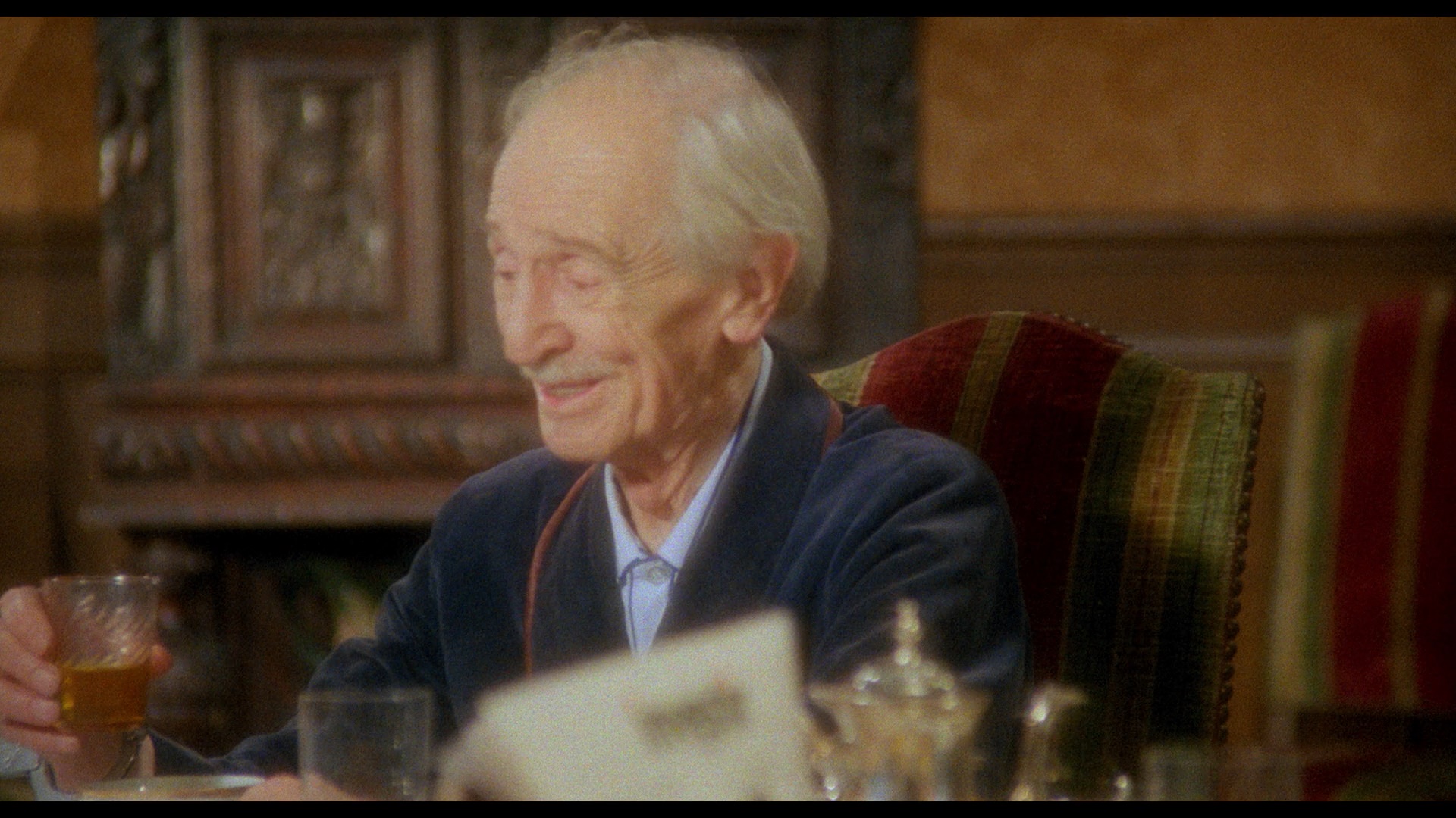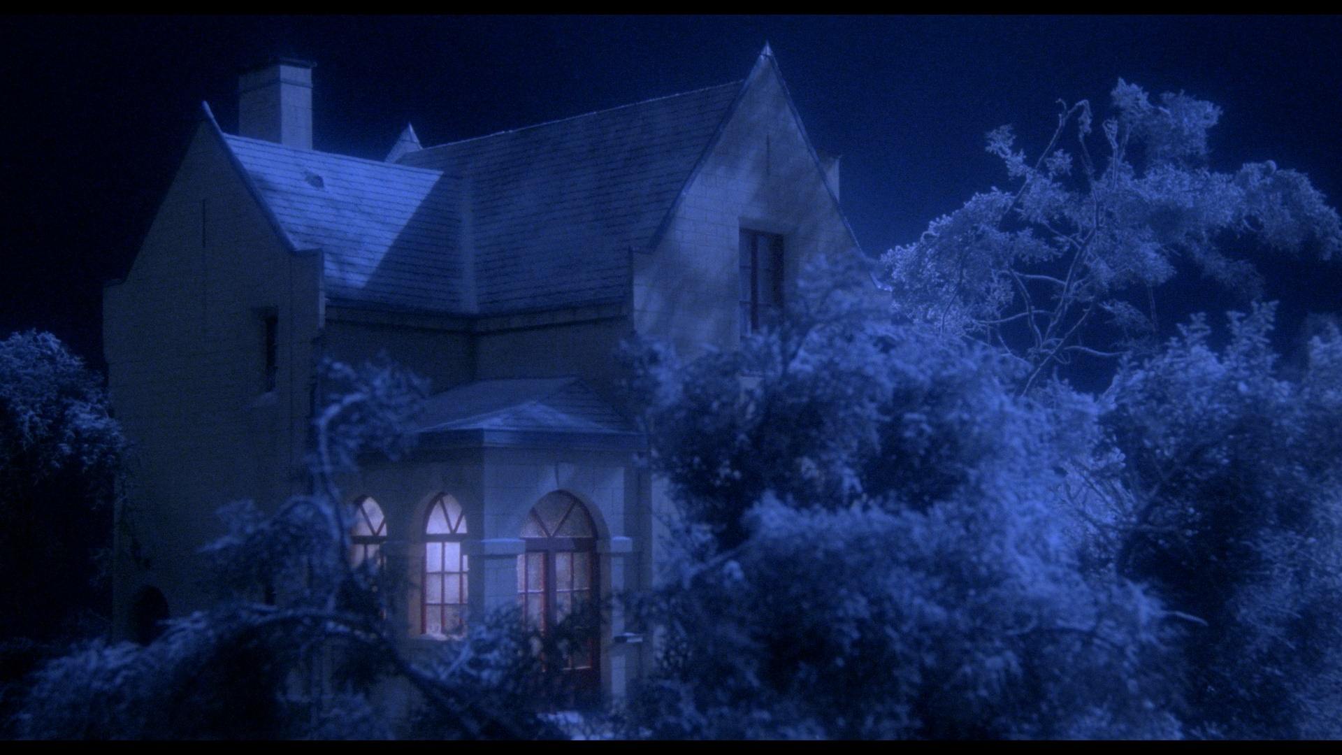 In 2020, Vinegar Syndrome brought the film to UHD and Blu-ray as a combo pack just in time for the holidays. The 4K-sourced transfer appears to be from the same scan, though on the Blu-ray it's been given a bit more color correction and has punchier, more vibrant reds and browns in particular. The UHD benefits significantly from the addition of HDR here and looks gorgeous in motion with a much wider spectrum of color on display that makes the heavy reliance on blue lighting from over half the film easier to appreciate; blacks are also deeper and richer throughout, and the white snow really pops whenever it flurries across the screen. The DTS-HD MA French 2.0 track sounds excellent and decodes beautifully to surround with lots of multi-channel activity throughout. The specs list "newly translated English SDH subtitles," though thankfully that's not correct as these are standard English subs without SDH designations (light yellow on the Blu-ray, white on the UHD). The UHD is bare bones and devotes all of its space to the film itself, a wise choice given how much breathing room it gets; the Blu-ray features a slate of extras essentially mirroring what's on the Camera Obscura release, albeit running at proper speed now so the running times vary a bit. (For example, "Jouets Interdits," or "Forbidden Games" as it's translated here, now runs 88m46s.) The production featurette is now called "Simon Says Roll Sound," FYI, in case you're trying to compare.