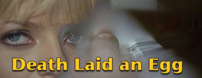Fascinating from its opening shots of microscopic chicken ovum in various stages of development, Death Laid an Egg is part of the freewheeling giallo experimentation that flourished with challenging films like Tinto Brass’s Deadly Sweet and Mario Bava’s borderline abstract Five Dolls for an August Moon before the big ‘70s renaissance. Though it feels intent on subverting as many staples of the thriller genre as possible, it's interesting to see how this film's DNA did manage to seep into some of the later gialli, most notably Autopsy (whose opening sequence owes a heavy debt to this film) and the disorienting Spasmo. Not surprisingly, the film posed a marketing challenge around the globe where it also screened under such titles as Plucked and (in the U.K.) A Curious Way to Love, which is putting it mildly. The idea of doing what amounts to a meta dissection of a thriller trend that had only been in vogue for about five years was way over audience’s heads at the time (and might still be), with the final twenty minutes in particular offering an audacious refusal to conform to audience’s expectations.