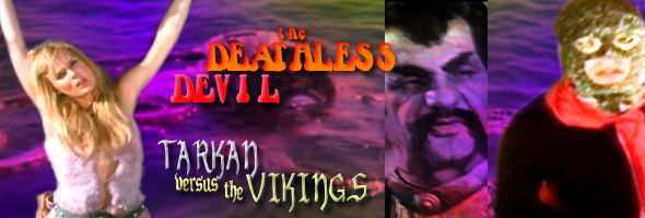 Now going back a few centuries, witness the daring exploits of Hun barbarian good-guy Tarkan (Tibet), who roams the land with his dog companion, Kurt. When a Viking raid leaves many of his compatriots dead or kidnapped, Tarkan embarks on a quest for justice against the Vikings, who plan to sacrifice the Hun king's daughter to a giant rubber octopus that lives in the ocean beside their castle. Throw in some slinky Chinese spies and plenty of action derring-do, and you've got one truly crazed period piece not soon forgotten. Based on a comic book, this is apparently the fourth in a continuing series of Tarkan adventures; hopefully we won't be deprived of the mighty Hun's further exploits somewhere down the road.