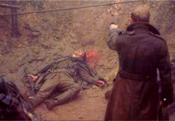 A dark and largely humourless affair, Deathwatch (which really could have used a better title) effectively evokes those hellish tableux readers often imagine while reading All Quiet on the Western Front. The injection of horror elements seems only a minor step away from the already nightmarish setting, and the film is at its best when the camera is simply allowed to prowl around the evocative sets, juxtaposing the actors' sweaty, bug-eyed faces against layers of wire mesh and splintered wood. In narrative terms this has all been done before, and most will probably approach this as Event Horizon in combat gear with a better twist ending. Much of the scenery chewing comes courtesy of Andy Serkis, now famous as The Lord of the Rings' Gollum; here he veers into sheer loony territory, ranting and raving at the camera until he finally gets his big scene in the spotlight. Gorehounds will get a kick out of the second half, when most of the murders finally kick in;