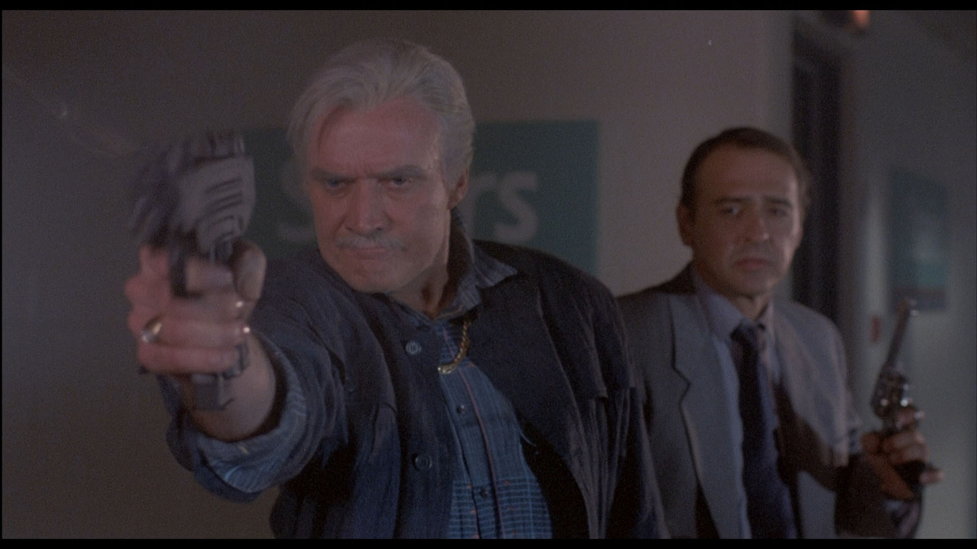 element. However, there's much more going on than meets the eye as Paul navigates a treacherous maze of cops, gangsters, and a seemingly endless supply of henchmen he can shoot. A little twistier than the average Death Wish film, this one focuses more on the organized crime side of things instead of street criminals or gangs; there is a (comparatively restrained) sexual assault scene thrown in once again to remind you of the series' origins, but for the most part it's just one death gag after another including a priceless bit involving a bottle of wine and a great amusement park execution. Obviously the basic plot is another riff on the whole Yojimbo / A Fistful of Dollars / Red Harvest / Last Man Standing idea of a mercenary pitting two crime organizations against each other, but of course having Bronson here with some trendy "just say no" anti-drug messaging makes all the difference. Amusingly, much of the film is scored with needle drop cues from previous Cannon films which will cause serious deja vu among some viewers, too.