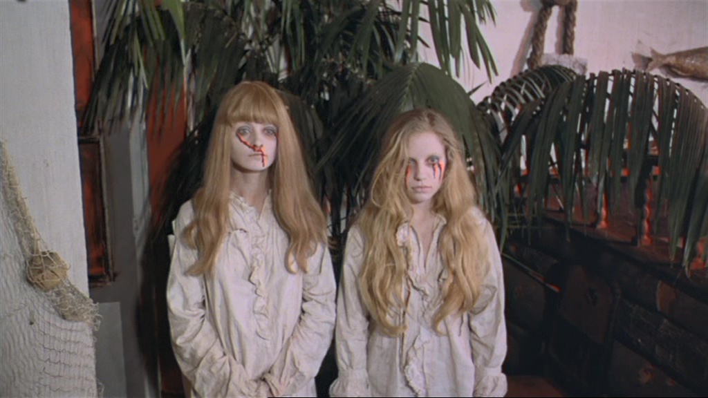 Rollin crafting some highly memorable sequences thanks to the eerie ruins and the strange beach scenery, punctured with the torn and ragged wooden remains of crashed ships. The performers are also allowed opportunities to exhibit more personality than usual with the villains making a memorable bunch, especially Tina's scene-stealing "kill them!" rants. Rollin's trademark visual fetish motifs are all present, including the mute blonde twins who were later turned up in various performer guises in Requiem for a Vampire, Phantasmes, and Two Orphan Vampires. A few moments are slightly spoiled