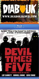 '70s twist, the cult video favorite Devil Times Five charts the havoc unleashed when a small bus load of psychologically unbalanced children en route to an institution crashes in the snow, leaving the twisted tots free to roam the countryside at will. Accompanied by a slightly older psycho in nun drag, Hannah (Smale), they find refuge at a nearby cabin where some twisted adults are busy getting drunk and acting out psychosexual parlor games of their own. Soon the kids -- including wannabe child actor David (future singer and tabloid fodder Garrett) and firebug Susan (Thompson) -- have wormed their way into the grown ups' confidence and can murder at will with any tools they find handy, never raising suspicion until it seems too late.