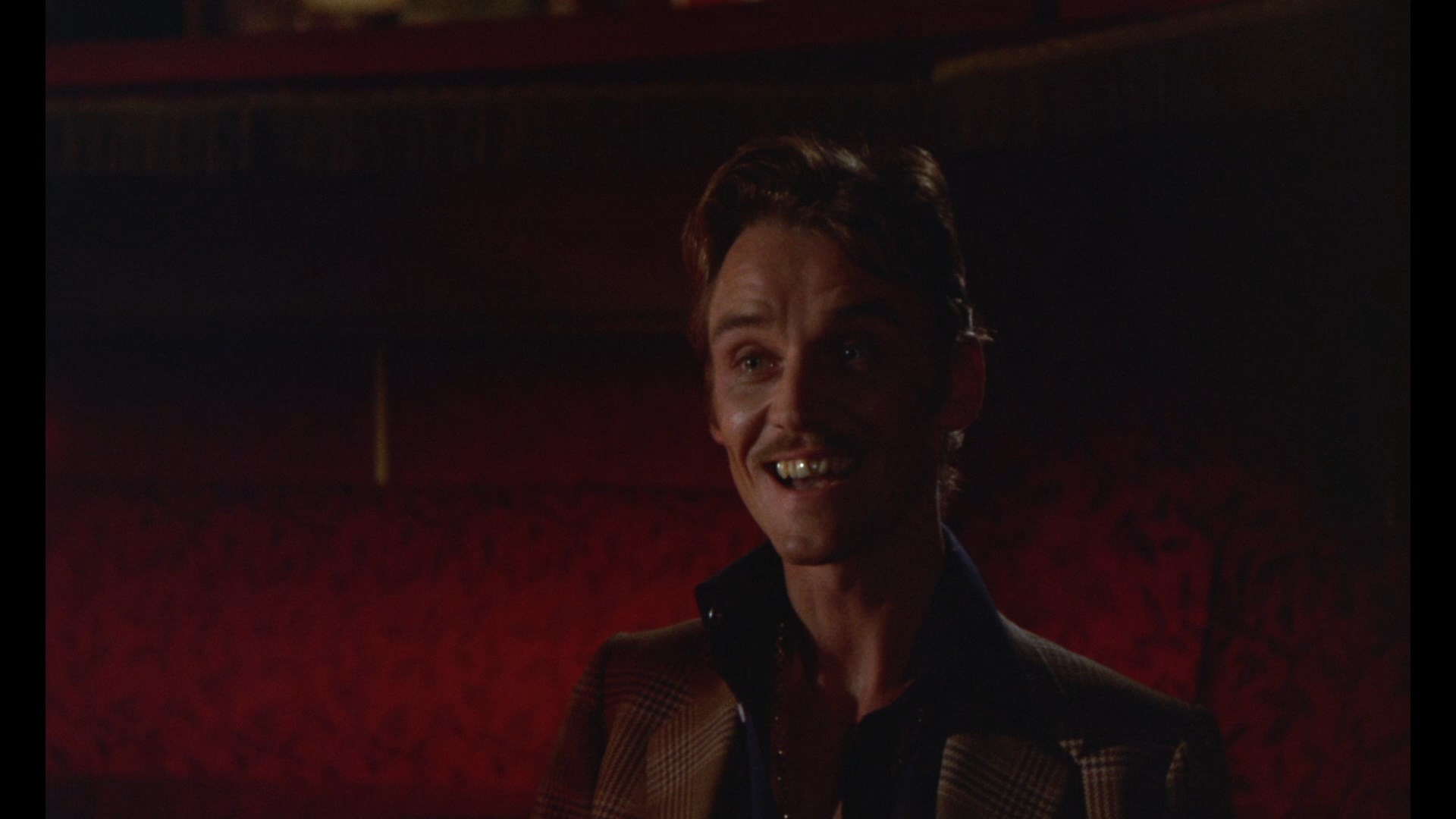 spookier look versus the sun-blasted appearnace on the American transfer. The English LPCM mono track sounds as good as always, now finally augmented with optional English SDH subtitles (particularly handy if you want to follow along and practice a dodgy Italian accent). A new commentary with Laura Mayne and Adrian Smith from the Second Features podcast is a loose and sometimes giddy accompaniment to the film as they provide background on the major players on screen, note the joys of the ultra-'70s production design, and tie it to other British genre films of the era. As they note up front it's a very podcast-style approach here that yields some surprising moments, especially a
