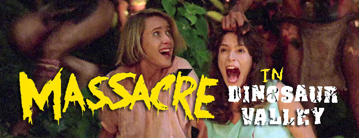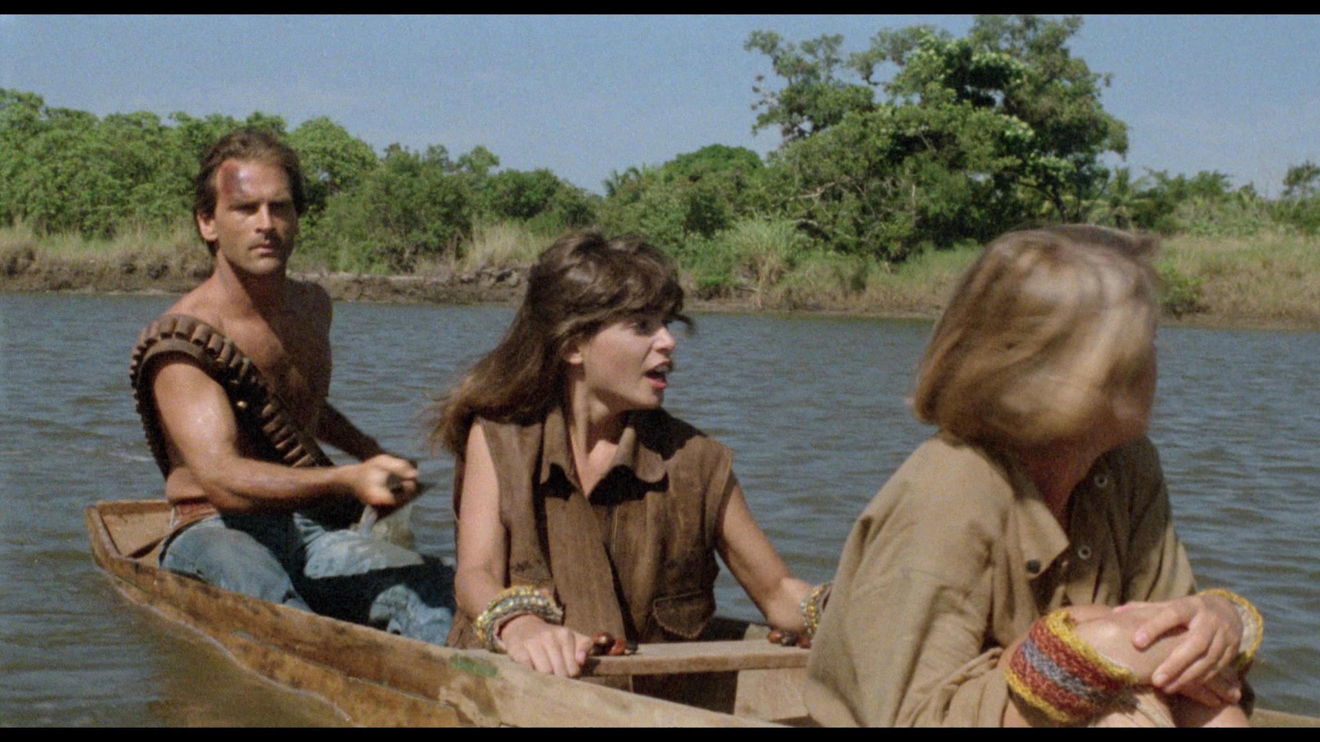 cannibal rally that began more or less in 1972 with The Man from Deep River, Massacre in Dinosaur Valley is a real oddity that goes for a rousing, lighthearted adventure tone much of the time and thankfully drops (most of) the animal mistreatment that plagued so many earlier entries. Essentially unseen outside Italy in theaters, the film became a familiar site in mom and pop video stores in the U.S. courtesy of Lightning Video (who played up the Indiana Jones angle on the box), the film marked the fourth and final starring vehicle for Michael Sopkiw, a former sailor who made a deal with his parole officer following a pot bust to find work in Europe. There he became a model and signed a deal to do a very memorable run of films including After the Fall of New York, Blastfighter, and Devilfish, all of which turned out to be cult favorites and made him a well-remembered, likable leading man of the era.