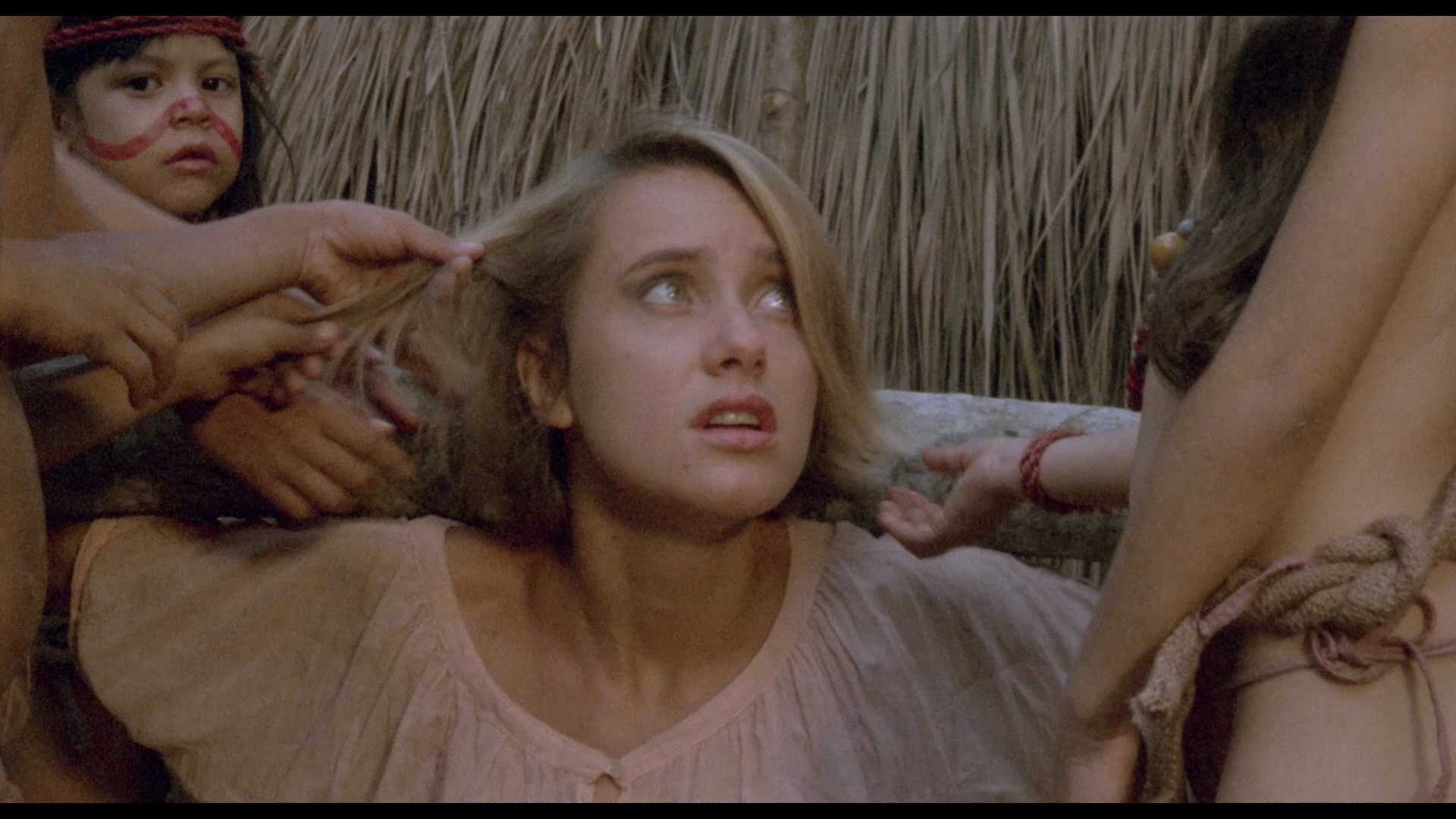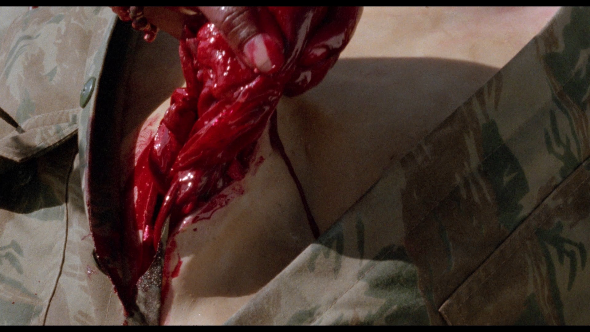then a Blu-ray under its original title from 88 Films (with a simultaneous DVD edition), losing 13s from a cockfighting scene but also absent some other footage presumably due to element damage. At least that disc features a reel of deleted scenes, Italian and English audio tracks with respective English subtitles, a trailer, and a "Location, Location, Cannibalisation" featurette (21m) by Calum Waddell. That release came before 88 Films' dedication to proper color timing, so it has that dull greenish tinge that plagued some of its other releases like Emanuelle and the Last Cannibals.