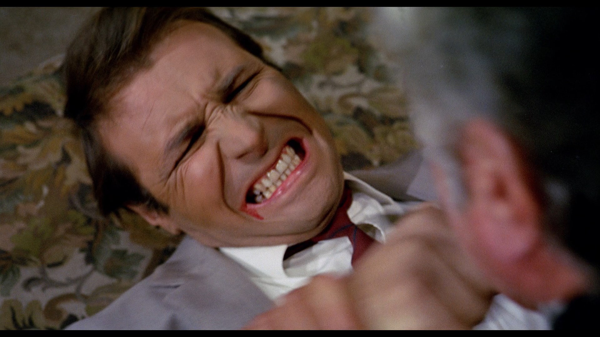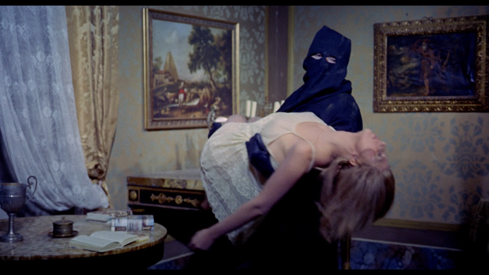 The first notable home video edition of this film was a German Blu-ray from X-Rated Kult in 2015 (as Satan ohne Gesicht) with the original Italian track or a German dub (the actors are almost all very clearly speaking English, but apparently that actual track was never created), with optional English and German subtitles. Extras include a newly created German trailer, a 5m38s making-of in German only, a brief 47s gallery, an 18m7s German-only interview with scholar Gerald Paradies, a German-only commentary, and a German text interview with Schürer. The master itself looks excellent and has been reused identically on the two subsequent Blu-rays, with a U.S. one from Twilight Time coming along in 2016 featuring an isolated music and effects track, liner notes by Julie Kirgo, and a commentary track by David Del Valle and