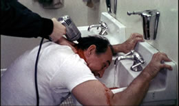 You want extras? You got 'em. Obrow and Carpenter chime in with an interesting audio commentary for the main feature in which they talk about its origins and how they rounded up talent on campus, why they chose to start off with a horror film while everyone else was doing experimental art films, and how the film went through different permutations on its way to an official release. You also get the isolated score if you don't have the CD already, two theatrical trailers under both of the release titles, as well as two featurettes. "My First Score" features Young at a mixing deck talking about how he lobbied to get his first scoring gig on this film and the "stinger" techniques he still employs today; he doesn't really mention any of his later horror scores that came out of this one, but it's a good, short chat and worth watching. "My First Slasher" features make-up effects creator Matthew Mungle talking about creating gory, practical death scenes with very limited resources, as well as his disappointment when much of his work wound up on the cutting room floor upon its release. There's some really funky green screen work here that makes the back of his skull look like it's being nibbled on by the black background, but otherwise it's a nice (and atmospherically shot) featurette as well. Like the original My Bloody Valentine, this is definitely a long-awaited and essential title for any '80s gore fans who always wanted to see how brutal this film was before the heavy blow of censorship struck it down.