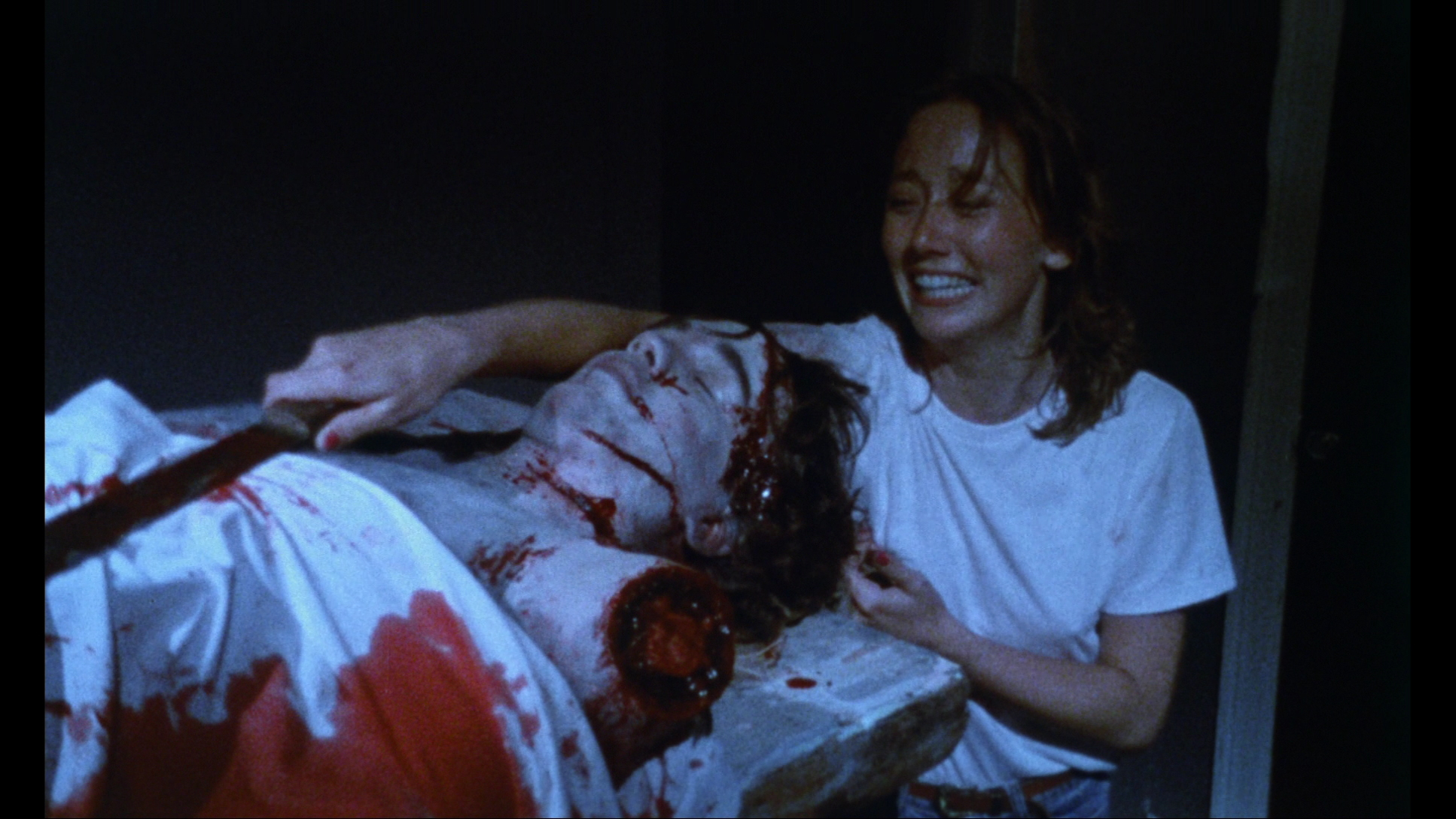 Against the odds, Synapse somehow managed to dig up a surviving 35mm answer print for the original uncut version entitled Death Dorm, unseen by audiences at all before now. Their dual-format release includes a DVD and a Blu-Ray, with the latter definitely the version of choice if you can play both. Considering we're talking about a 16mm film blown up to 35mm in the early '80s, don't expect anything slick and super pretty; however, this is by far the best this film has ever looked (and no, it didn't look great in the theater either). Interestingly, this is also the bluest transfer to come along since William Friedkin's Cruising, which actually suits the grim mood of the film just fine. There's nothing to fault in the level of detail here, and you lots of that chunky '80s grain without the havoc caused by compressing it down to standard def that would have turned into digital noise. The DTS-HD audio does what it can with the fairly thin original sound mix; Young's score sounds just fine, and the dialogue is clear enough.