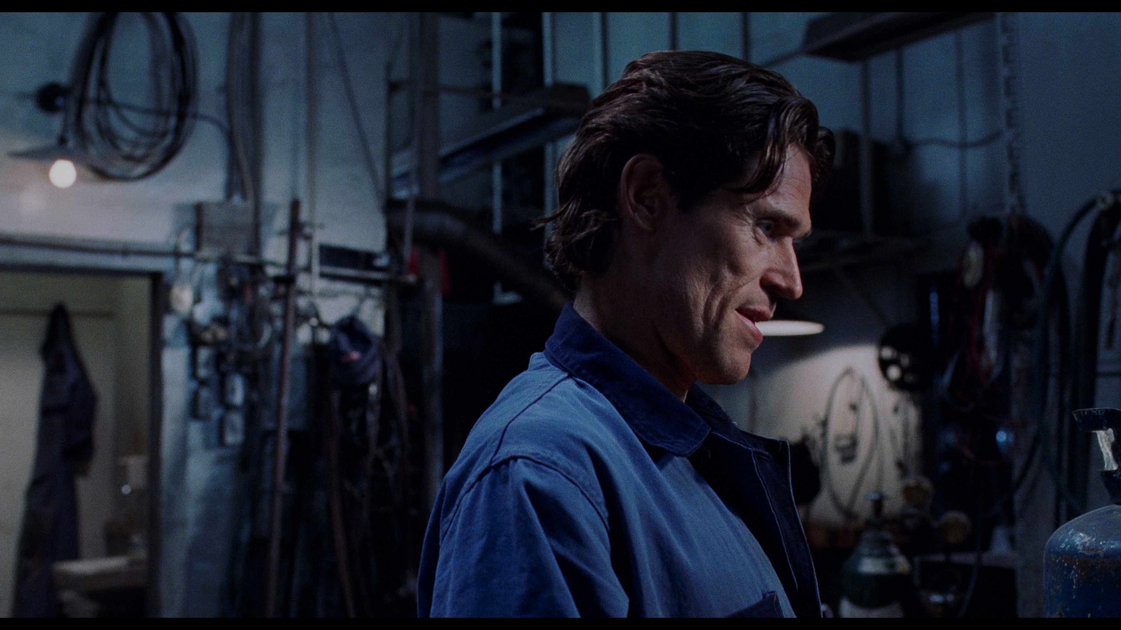 In 2024, Vinegar Syndrome gave Cronenberg's film its first worthy U.S. release as a dual-format 4K UHD and Blu-ray set (both standard retail and a limited edition that sold out almost immediately, featuring a 40-page book with essays by Justin LaLiberty and Jon Dieringer). Featuring a new 4K scan from the 35mm interpositive, it's a very obvious upgrade over past releases with more image info visible, more accurate 1.85:1 framing, and a more robust and evocative color scheme that outclasses how this looked in theaters. The UHD's HDR is particularly impressive, bringing out a wide array of colors in the darker scenes that were flattened out completely before (especially the hotel room scenes). The DTS-HD MA 5.1 and 2.0 English tracks both sound excellent with Howard Shore's typically eerie score getting most of the benefit of the multi-channel separation, and optional English SDH subtitles are provided. The Cronenberg, Suschitzky, and Isaac commentary tracks are all ported over here, while a thoughtful new one with film historian Jennifer Moorman takes an analytical approach to the film including aspects of philosophy, the real-life fatwa that inspired the story, the handling of multiple planes of reality, the interplay of violence and intimacy, and the role of gender within the gaming community. In the new "Crafting (un)Reality" (22m14s), art director Tamara Deverell chats about the choices made to bring the film's vision to life with its blurring of the lines between the game worlds and explains how her own extensive art background played a role in her career choice."Frankenstein Syndrome” (9m24s) is a new piece with make-up effects artist Stephan Dupuis exploring how his early love of monster movies informed his work and what he brought to conjuring up some of the grotesque imagery in the film, including that memorable Chinese restaurant shooting. In "Sticking with Genius" (10m25s), producer Robert Lantos goes into his affinity for staying loyal to genuine creative innovators like Cronenberg and the working relationship they enjoyed while he was in the process of selling his company Alliance to form the new Serendipity. Finally the new "The Art of the Title" (7m) has opening title designer Robert Pilichowski exploring the influence of classic designers like Saul Bass and explaining the concept behind his work on this film, as well as the renaissance in striking title sequences that arose throughout the '90s. Returning here from earlier editions are "Frame by Frame: The Invisible Art of Production Designer Carol Spier," the special effects and promotional featurettes, the trailer, and the EPK interviews with Cronenberg, Law, Leigh, Dafoe, and Isaac. A promotional and behind-the-scenes gallery (3m24s) is also included.