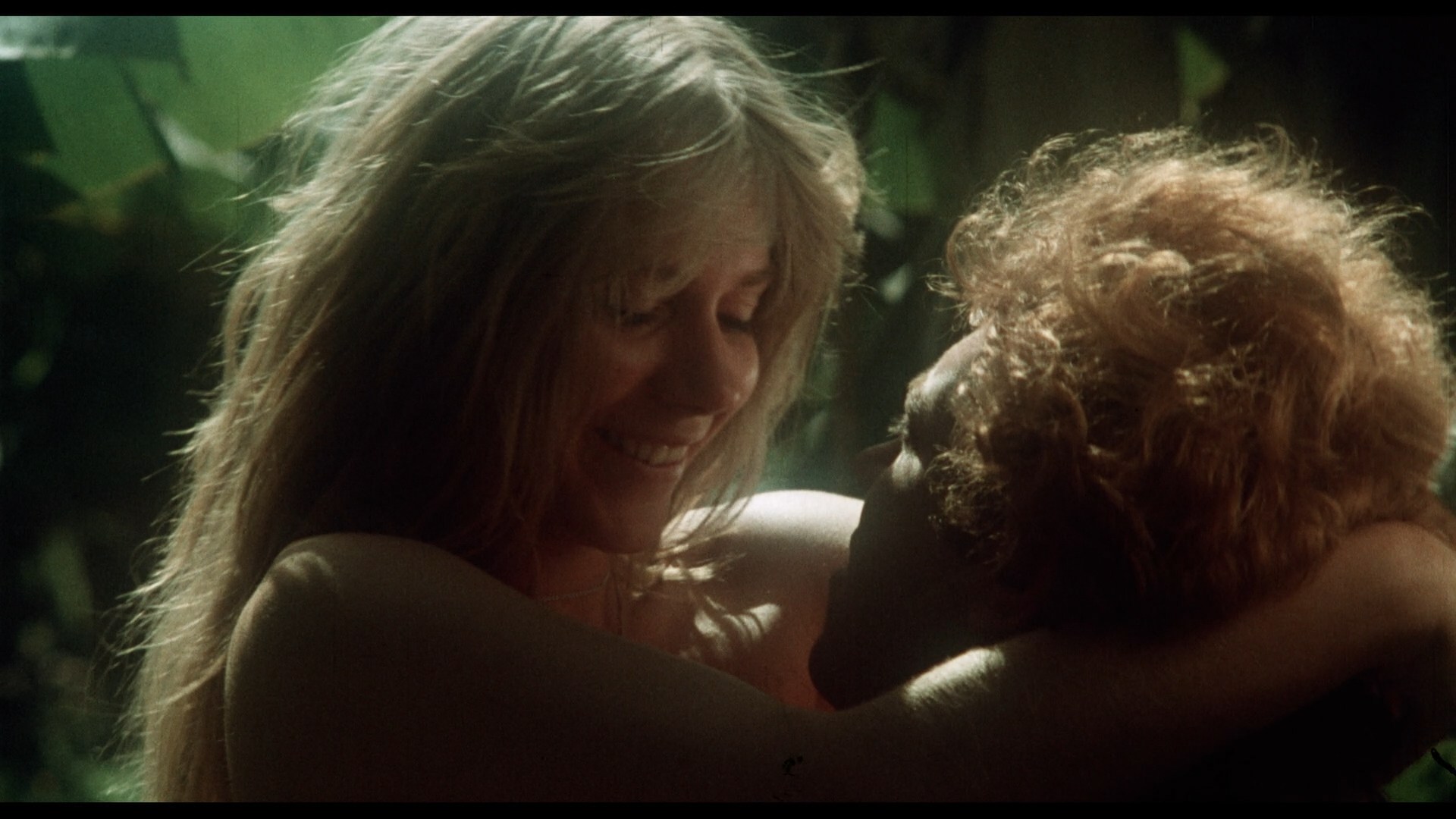 debut Blu-ray release pieces together the best existing Spanish and German prints that's a much more coherent experience than the VHS versions that once floated around (plus a bootleg DVD as The Angel and the Beasts). This one is also set on the Canary Islands and feels very Jess Franco as well (in a different way), with sexploitation director Hubert Frank (Vanessa, Melody in Love) doling out the jungle sleaze in heavy doses here. While taking a private plane ride with her married sugar daddy, danger-seeking Susi (Adriani) ends up parachuting for her life when their flight takes a dive. She ends up on a tropical island populated by Henno (Black Venus' Ceinos), Wim (Godó), Silvia (Rey), and Brit (Wondratschek),