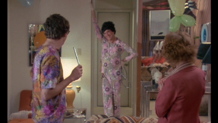 and repays him by straddling him with a strap-on in "Wearing the Pants." A young student (Rene Bond) pursued alone at night winds up in the clutches of boxer Al Williams who forces himself on her in the ring in "Nightmare Alley;" then Uschi Digart and Mara Lutra have a literally steamy lesbian encounter in the sauna ("You have beautiful breasts." "Sank you!" "I've always wanted to have bigger ones like yours!") in "The Girls." Maria Welton gets to know her banana intimately in "Fruit Salad" and goes borderline hardcore in a swimming pool with John Holmes; a gray-haired, busty mother (Candy Samples) welcomes her son home from the military with a warm bath in "Mother's Darling;" three men visit sultry Shayne's apartment and watch her perform a pretty dull strip routine in "Black Velvet;" pigtailed Roxanne Brewer (Female Chauvinists) enjoys some "After School" time with her weak-hearted teacher by flashing her goodies at the blackboard; and finally Serena is stripped and ravished during a "Blood Orgy" by devil worshipers in jockstraps, led by uncredited smut goofball Charles Orlando.