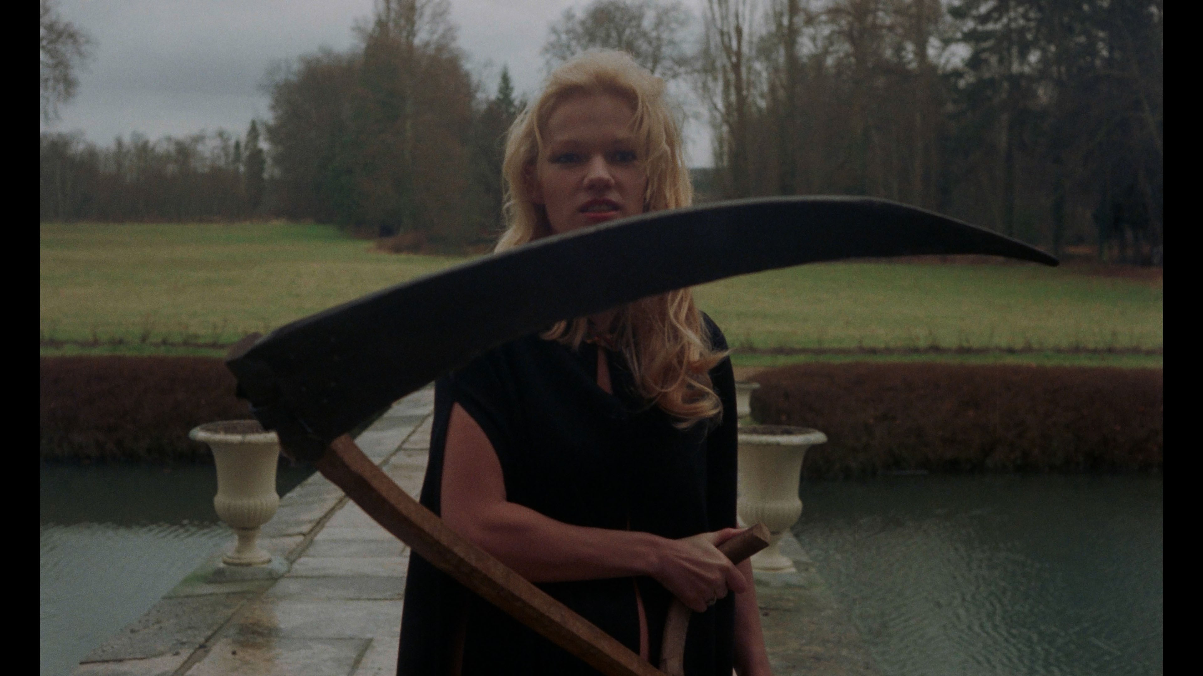 Along with The Living Dead Girl, this film remains the director's purest and most successful of the feminine mystique channeled directly through the Gothic tradition. Coming right off her stint on Rollin's The Grapes of Death, former adult film actress Lahaie makes a fine, memorable figure, tromping around semi-nude in her black cape and slashing open trespassers. Not surprisingly, the