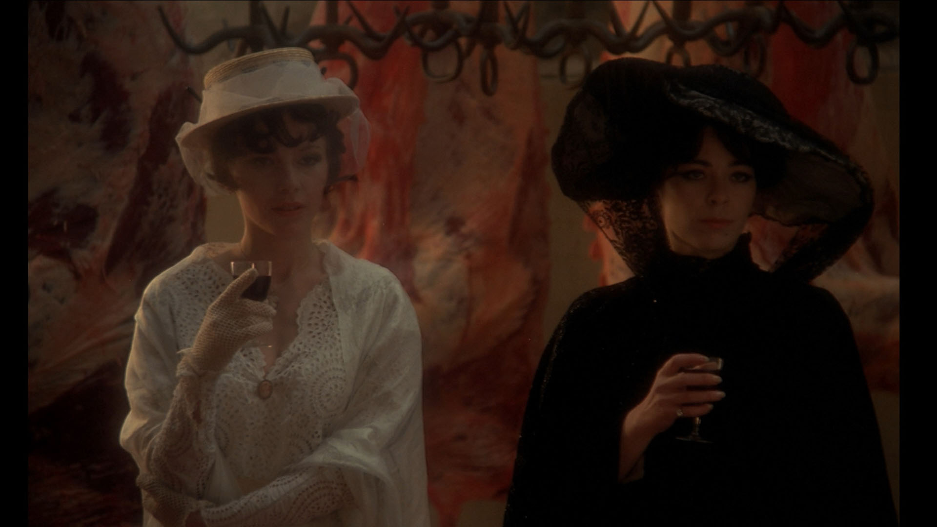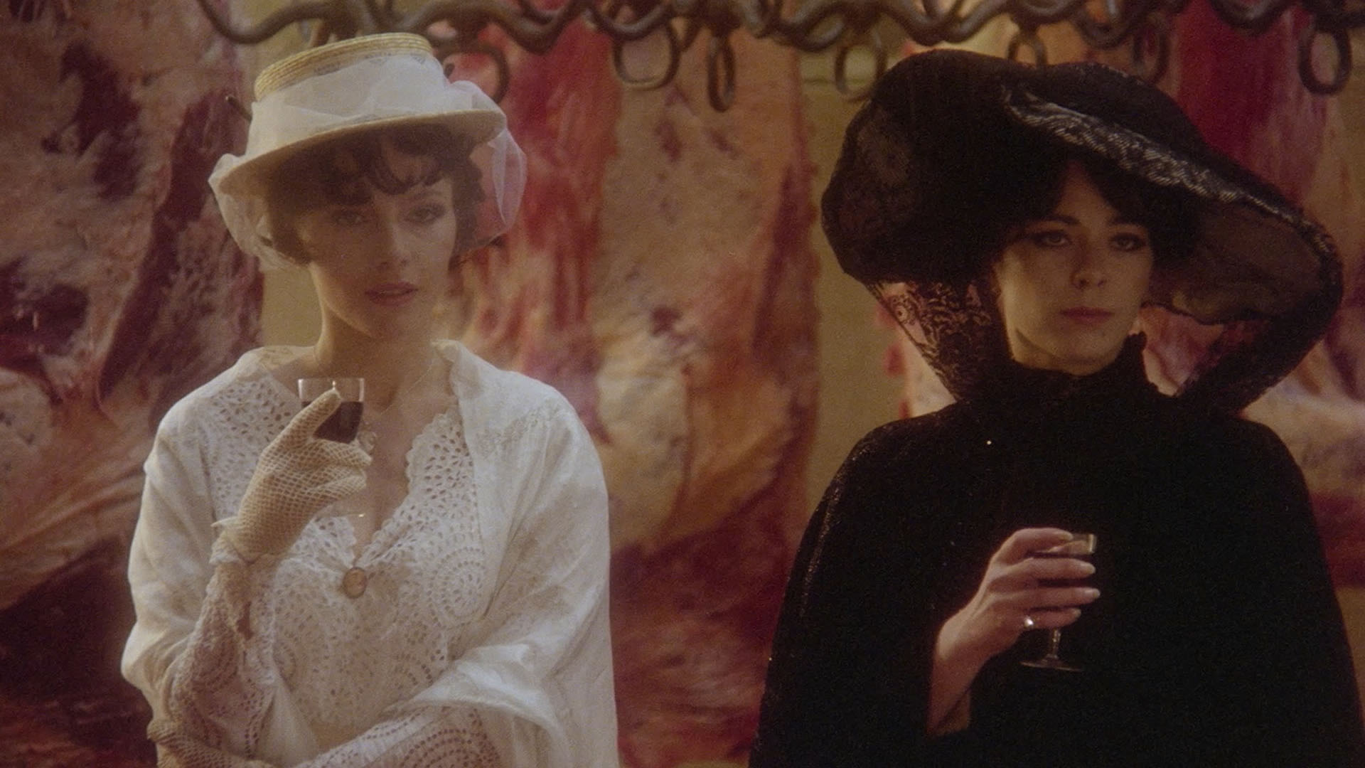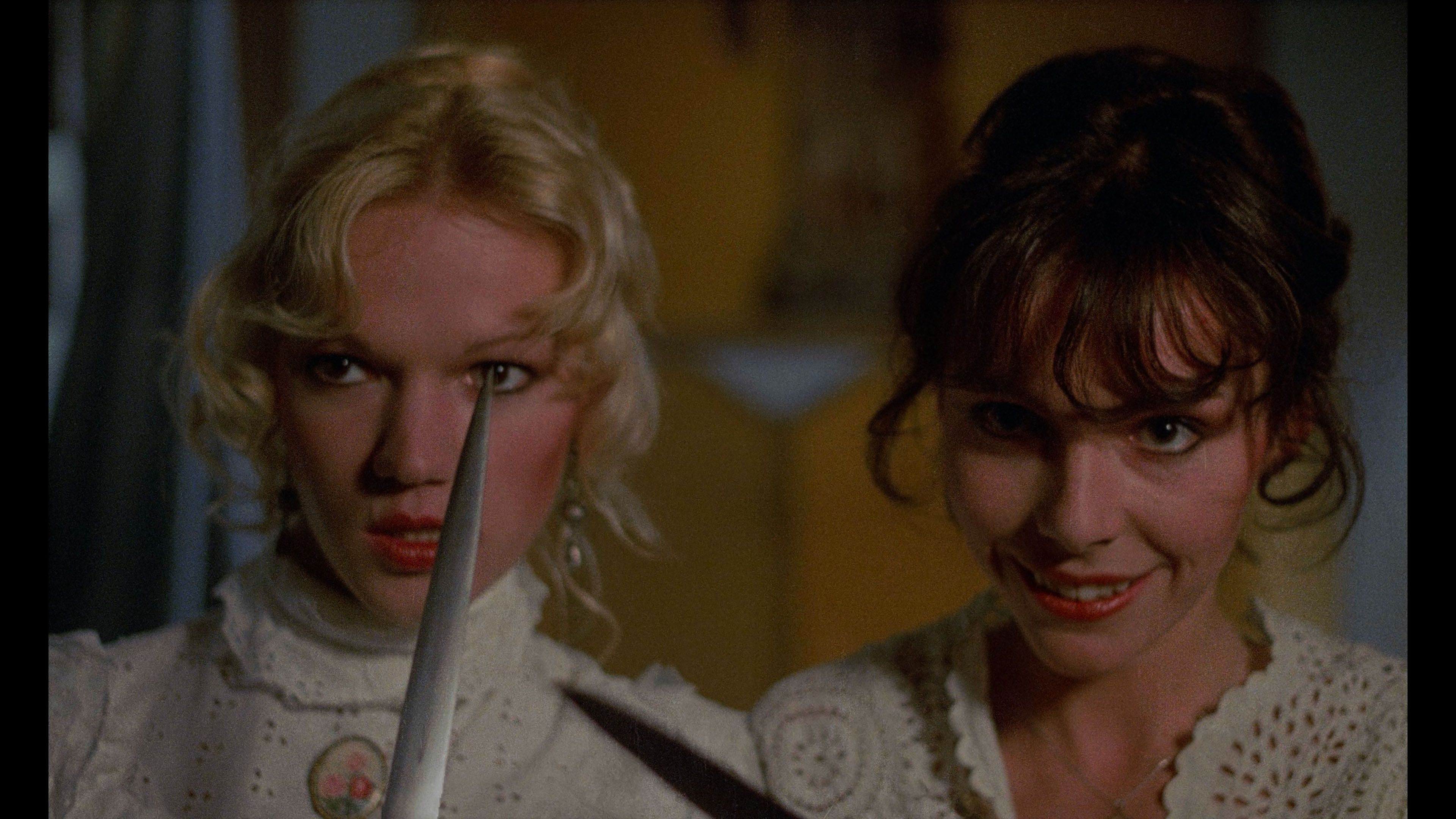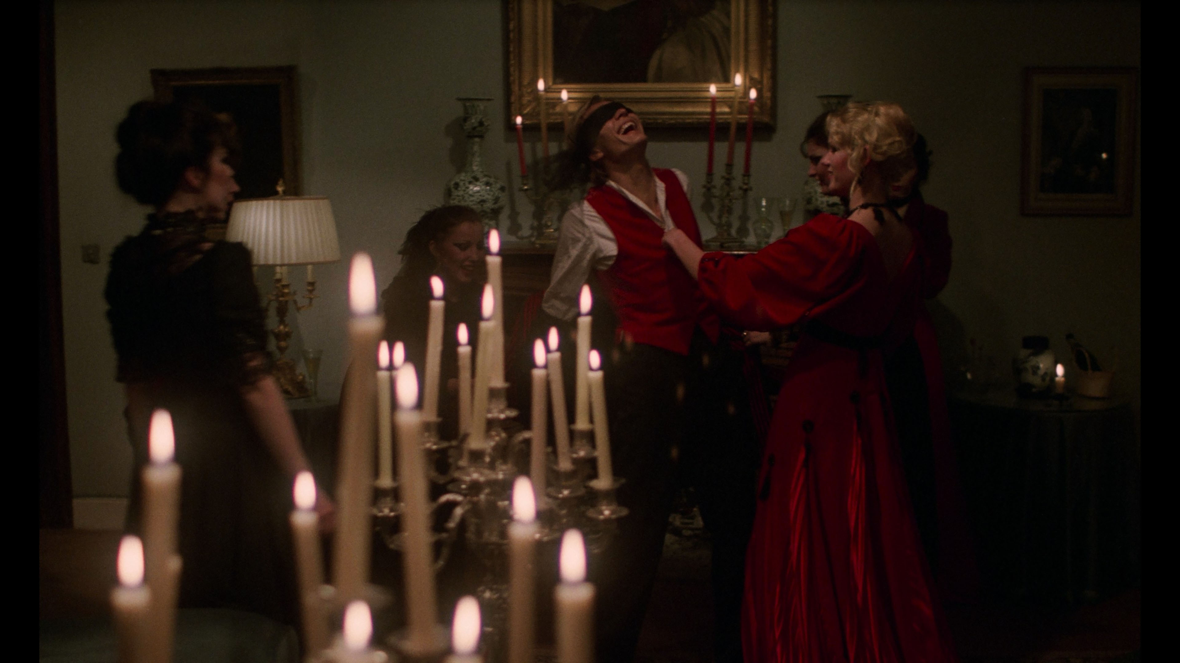 the Kino Lorber disc, here with an obvious uptick in detail, more refined shadowy blacks, and a delicate color scheme that looks very painterly throughout (especially with the HDR10-compatible Dolby Vision on the UHD). The French LPCM 1.0 mono track is also in perfect condition, sounding better than ever and featuring improved optional English subtitles. A new commentary by Jeremy Richey is a welcome addition covering the progression to this film in the wake of Rollin's financial difficulties (including the failure of Lips of Blood and his gun-for-hire work in the adult film industry), the literary and artistic influences at play here, the relationships to his more traditional vampire projects, and the contributions of other crew and cast members here. Included here in revised, more finely edited versions are the Rollin video intro (2m21s), a "Rituels" (7m42s) making-of featurette by Daniel Gouyette (Rollin's assistant) with Nathalie Perry and Lahaie, the D'Aram interview (19m42s), the deleted sex scenes, the "Virgins and Vampires" episode, and the French trailer, plus a 74-image gallery. Completely new here is the insightful "Love Like Blood" (6m51s) with author and film historian Virginie Sélavy covering the connections to a Jean Lorrain short story, the creativity that flourished over the speedy two-week shoot, Rollin's treatment of lesbian attraction, and the unique, erotically-charged use of blood drinking. The package comes with an exclusive 80-page book featuring a new essay by Vanessa Morgan, an archival intro by Rollin, a previously untranslated archival interview with Rollin, an archival interview with actor Fanny Magier, critic Daniel Bird on the film’s soundtrack, and film credits.