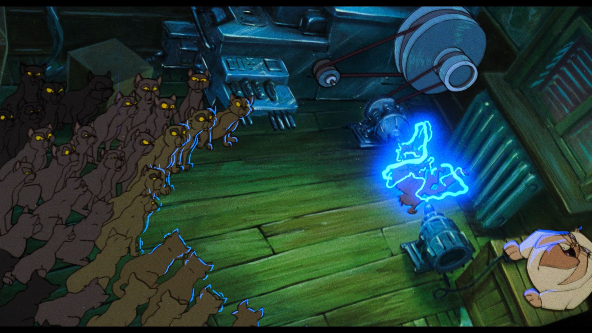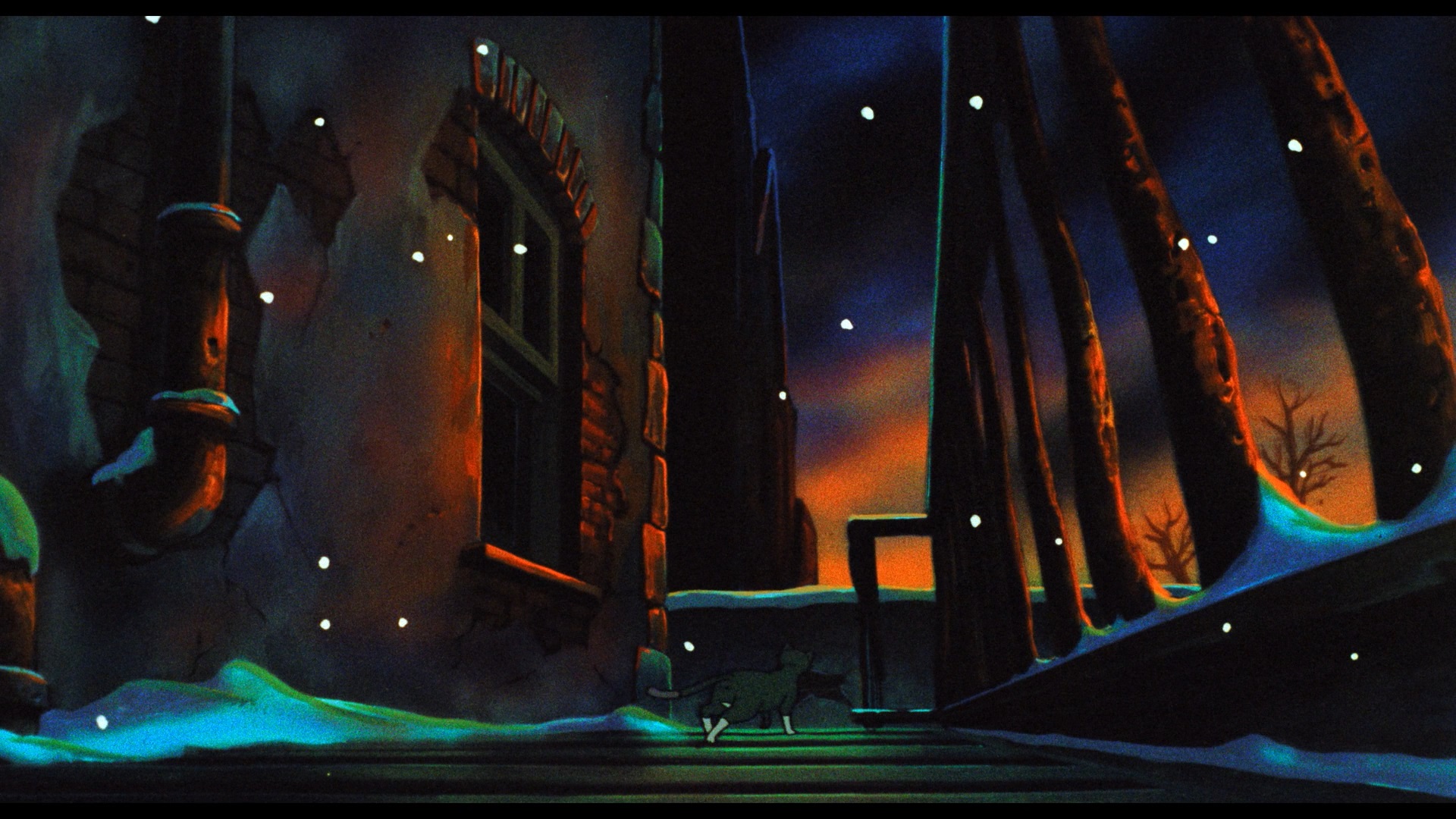 feature, Felidae is both impeccably mounted and consistently shocking. Even years after Ralph Bakshi, it’s jarring to behold cute cats swearing and slashing. The film also refuses to anthropomorphise its hero; Francis makes gory work of mice and has savage, neck-biting sex with passing females-- hardly typical behavior of a screen detective. The film also contains a number of bravura artistic sequences, including a breathless, highly suspenseful rooftop pursuit and a shocking, Gerald Scarfe-style dream sequence with hundreds of disemboweled cats dancing on puppet strings. At least at some level this was probably intended to get international distribution, especially since it features a score by Oscar-winning composer Anne Dudley and Art of Noise member Anne Dudley with a title song by Boy George!