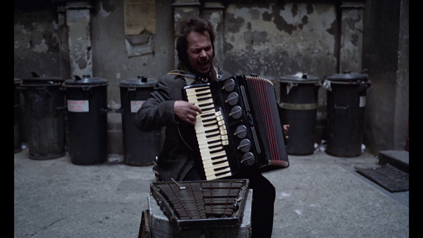 Two years later in 1979, Herzog broke through on a much broader international scale with Nosferatu the Vampyre, his much-touted remake of the F.W. Murnau silent horror classic; this proved to be a rare revisit that stands on its own as an artistic achievement and is highly recommended viewing for both Herzog and horror fans. The film is included in both Blu-ray sets, albeit with very significantly different transfers; you can read a more complete breakdown of the presentation and extras here.