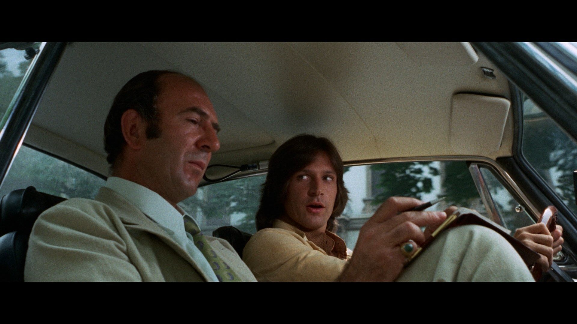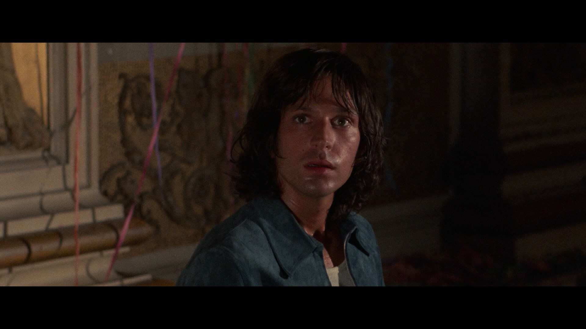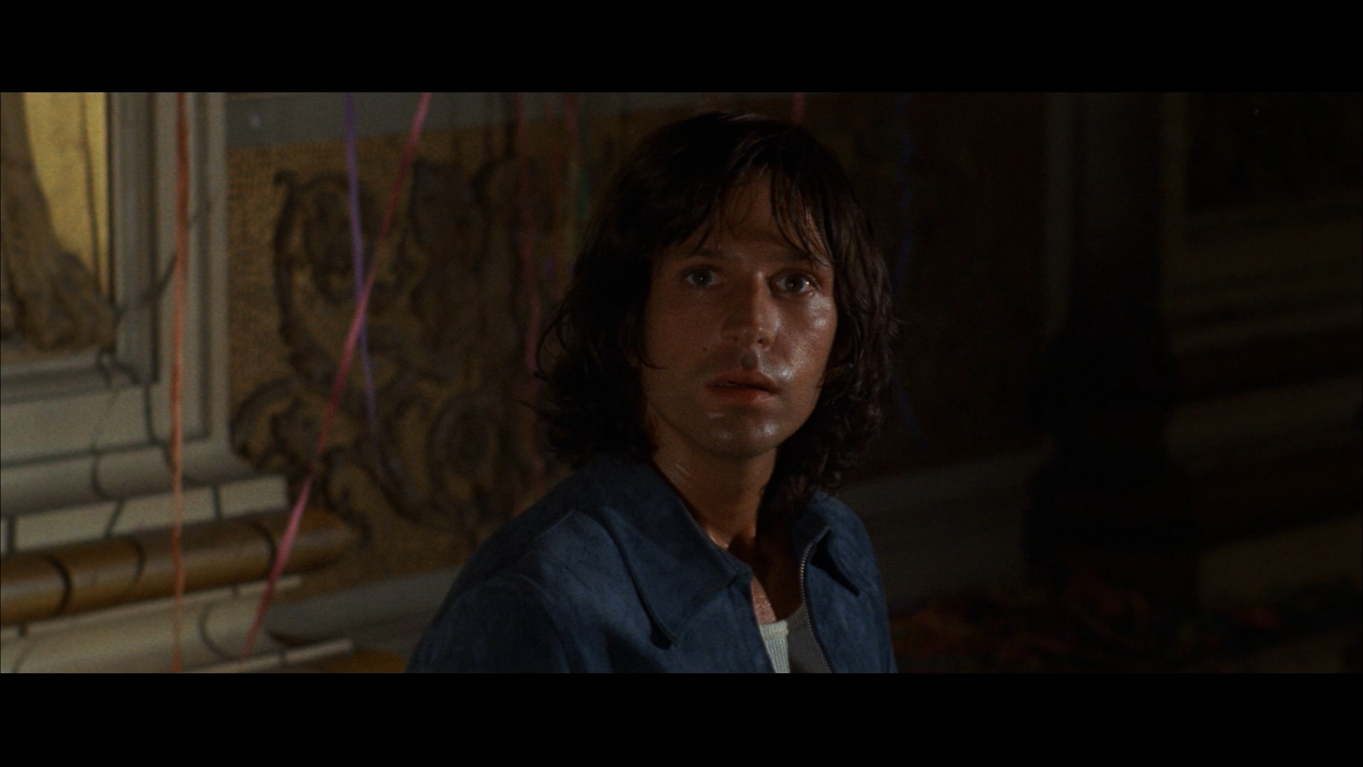 DTS-HD MA 2.0 mono options with English SDH or English translated subtitles; of course, in its complete version the English track still reverts to subtitled Italian for the extra footage in the climax. The English track finally sounds excellent all the way through with no distortion issues. It's also worth noting that the opening and closing titles (plus the killer's notes) are taken from the negative material for the English-language version, so at long last you can see "You have been watching Four Flies on Grey Velvet" in pristine quality. The transfer itself looks staggering, with the UHD in particular glowing with the HDR bringing out some gorgeous colors like the deep blues of Brandon's shirts to the many gradations of darkness in the central house. Also the color timing has been corrected for the cemetery sequence, which now gradually goes from late afternoon to nightfall as intended. (See the third frame grab comparison below.) The UHD and first Blu-ray feature an audio commentary by Troy Howarth and yours truly on the director's cut (so no evaluation of that here) along with the Italian and U.S. theatrical trailers. The first Blu-ray also contains two featurettes: "Lord of the Flies" (28m12s), with Argento recalling the autobiographical elements of the project, its effect on his marriage at the time, his good rapport with Brandon, and his approach to the giallo at the time that he would briefly try to veer