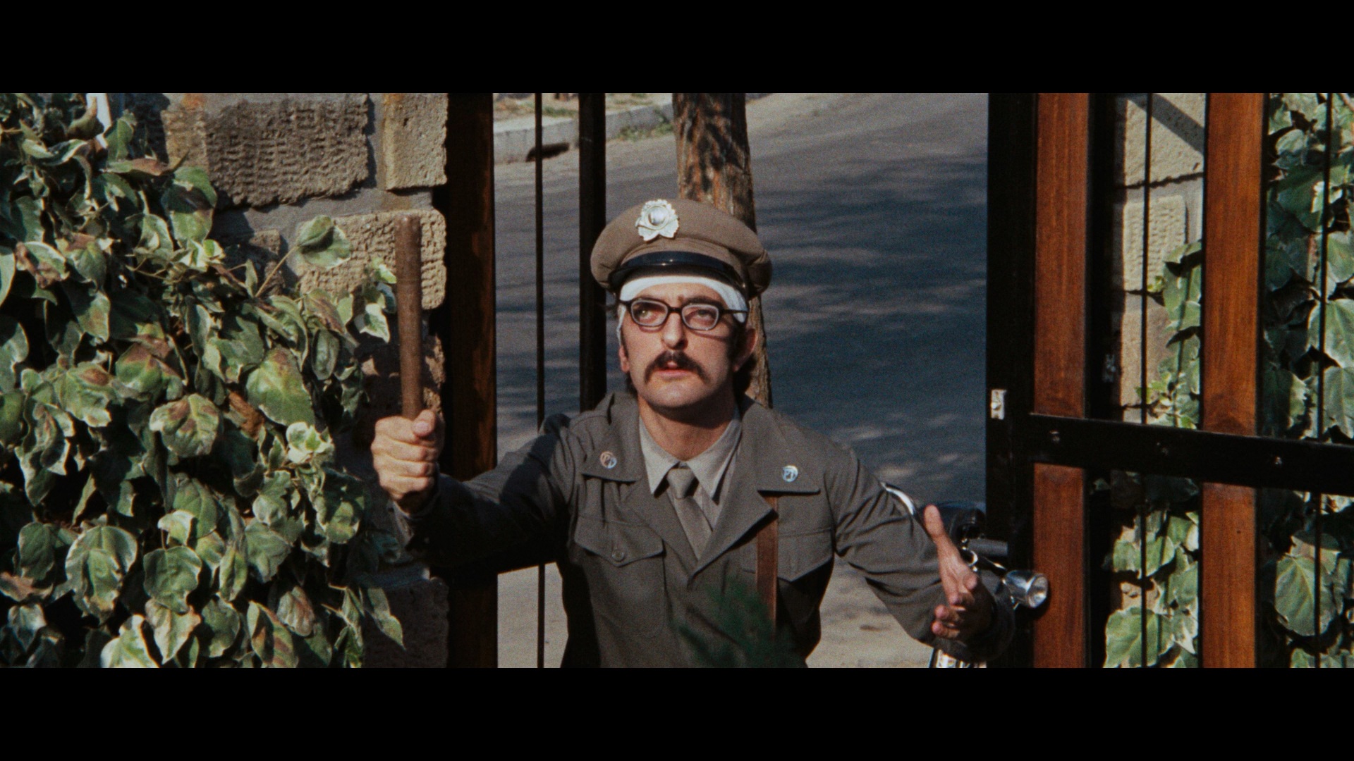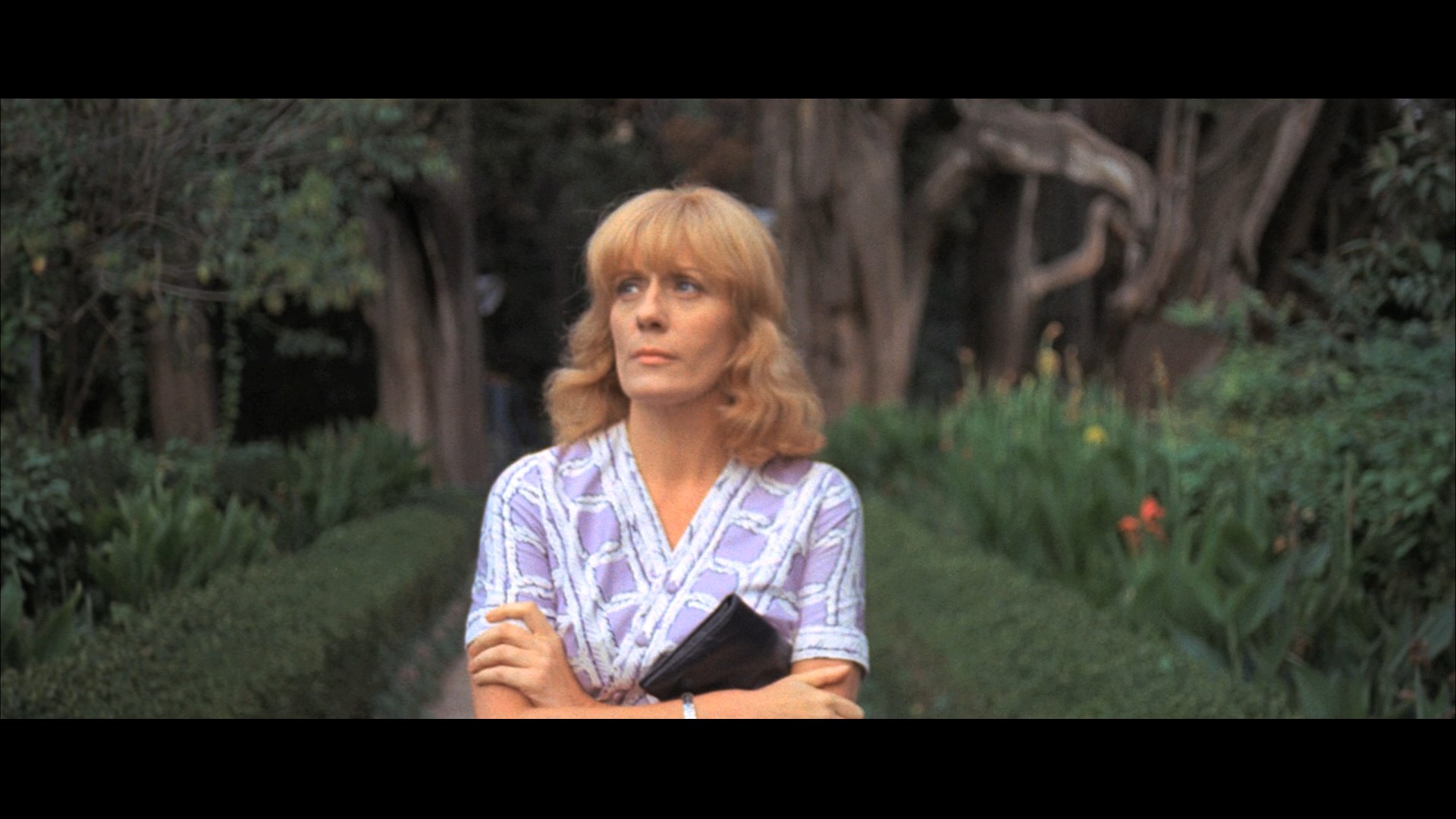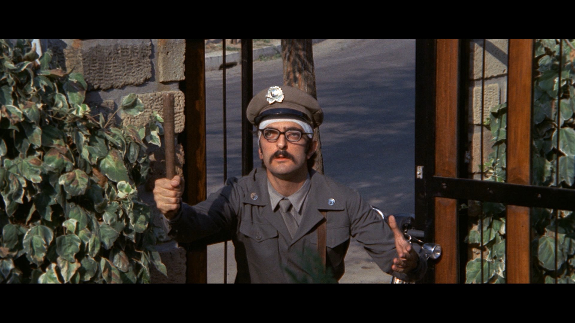 DTS-HD MA 2.0 mono options with English SDH or English translated subtitles; of course, in its complete version the English track still reverts to subtitled Italian for the extra footage in the climax. The English track finally sounds excellent all the way through with no distortion issues. It's also worth noting that the opening and closing titles (plus the killer's notes) are taken from the negative material for the English-language version, so at long last you can see "You have been watching Four Flies on Grey Velvet" in pristine quality. The transfer itself looks staggering, with the UHD in particular glowing with the HDR bringing out some gorgeous colors like the deep blues of Brandon's shirts to the many gradations of darkness in the central house. Also the color timing has been corrected for the cemetery sequence, which now gradually goes from late afternoon to nightfall as intended. (See the third frame grab comparison below.) The UHD and first Blu-ray feature an audio commentary by Troy Howarth and yours truly on the director's cut (so no evaluation of that here) along with the Italian and U.S. theatrical trailers. The first Blu-ray also contains two featurettes: "Lord of the Flies" (28m12s), with Argento recalling the autobiographical elements of the project, its effect on his marriage at the time, his good rapport with Brandon, and his approach to the giallo at the time that he would briefly try to veer