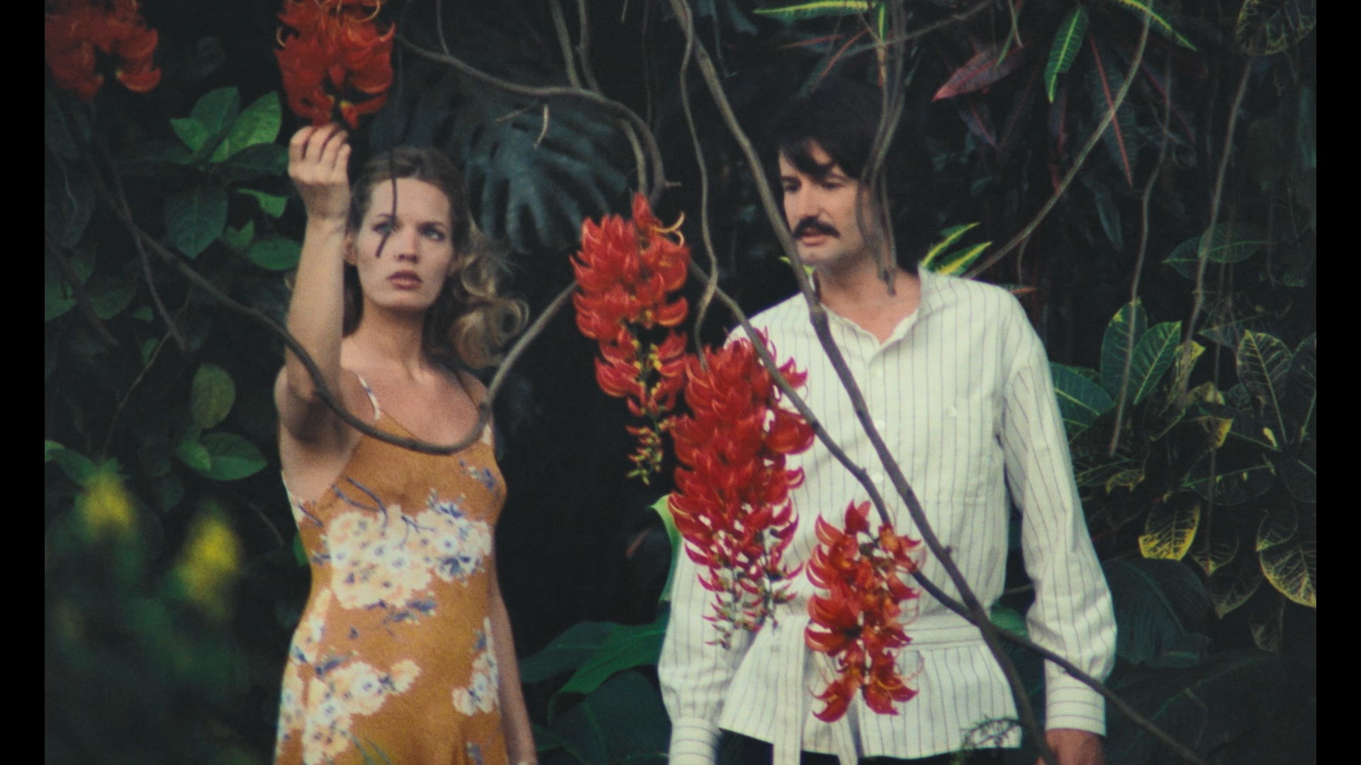 colorful but eerie foliage running wild nearby. The actors don't really have to emote all that much aside from conveying either rakish bemusement or decadent and sadistic ennui, but everyone makes a strong visual impression with one-shot star Kerry making for a good femme fatale with a death fetish.