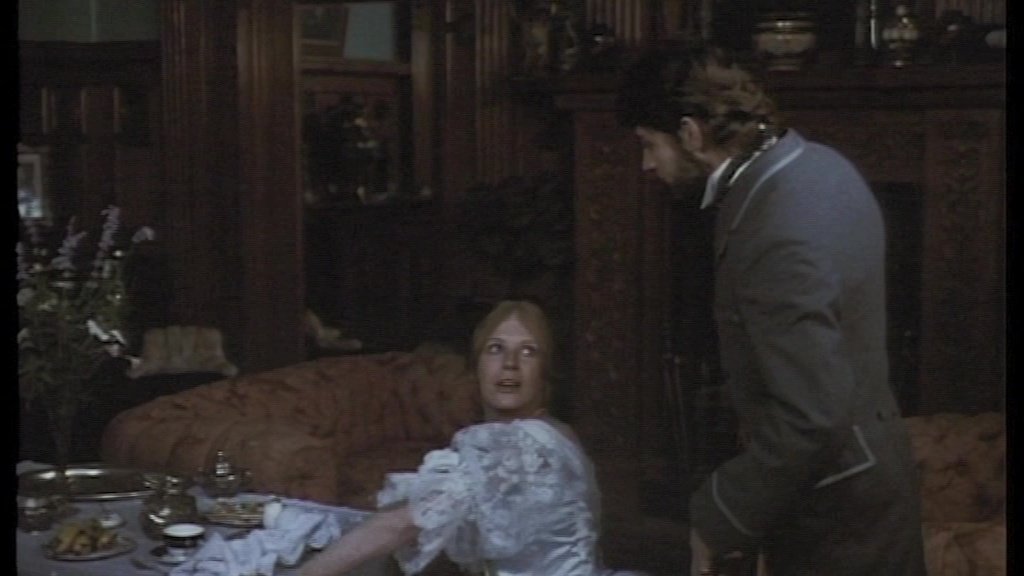definitely a huge step up from the VHS days, though by current standards it’s definitely on the soft side. The first disc contains the feature film along with the rarely-seen (and very long) theatrical trailer and a thorough audio commentary with Weeks and moderator Sam Umland, which covers Weeks’ considerable difficulties getting his films off the ground and completed to his satisfaction along with the headaches of dealing with distribution. Disc two features a very extensive new documentary, “Ghost Stories” (72m29s) whose running time puts it close to the main feature in terms of value. Weeks, Dann, Melvin, Shelley, and Geeson appear along with Kim Newman for an overview of the entire production, which features some great anecdotes about the vintage costumes (especially poor Dann who had the most unflattering ensemble of the bunch), the ill-fated MacKerrell (who’s actually quite good in his only notable film role), Faithfull’s severe addiction problems, and the various artistic and period influences on the film. Also included are a host of Weeks short films and commercials including “Owen’s War” (4m58s), “Deserted Station” (5m44s), “The Camp” (4m26s) (all 1965), the wonderfully atmospheric “Moods of a Victorian Church” (1m17s) (1967), “Two at Thursday” (10m42s) (1968), Tigon’s “1917” (34m12s) (1968) which would make an interesting companion to the 2019 Sam Mendes film of the same name, and the Kenneth Anger-ish “Flesh” (2m48s) (1968), with the last two shorts presented in anamorphic 2.35:1 widescreen (the rest are standard 4:3). Also included are a crazy Weeks commercial for “Chelsea Cobbler” (47s), pdfs