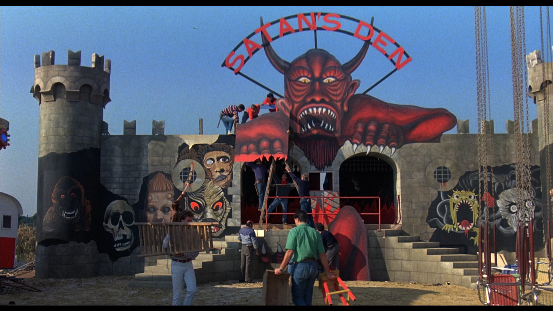 spook attraction Satan's Den, Uncle Ned (Dano) is less than thrilled with the situation and experiments with a spell he found in a book, which rouses a bunch of ghoulies who stowed away on the carnival's truck at the beginning. Soon the beasts are wreaking havoc in the lives of the carnies including Ned's truck driver nephew Larry (Martin), theatrical and diminutive Sir Nigel Penneyweight (Hard Rock Zombies' Fondacaro), and potential love interest Nicole (Pumpkinhead's Remsen). Before long the carnival is turning into a bloodbath with pendulums, guillotines,