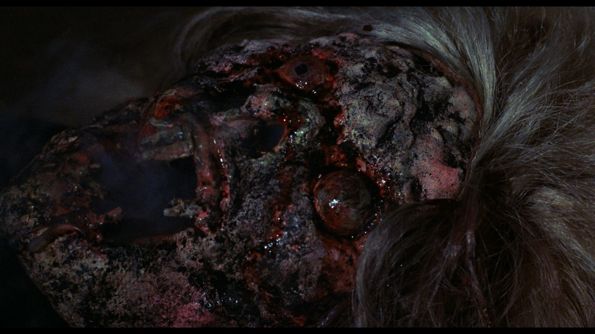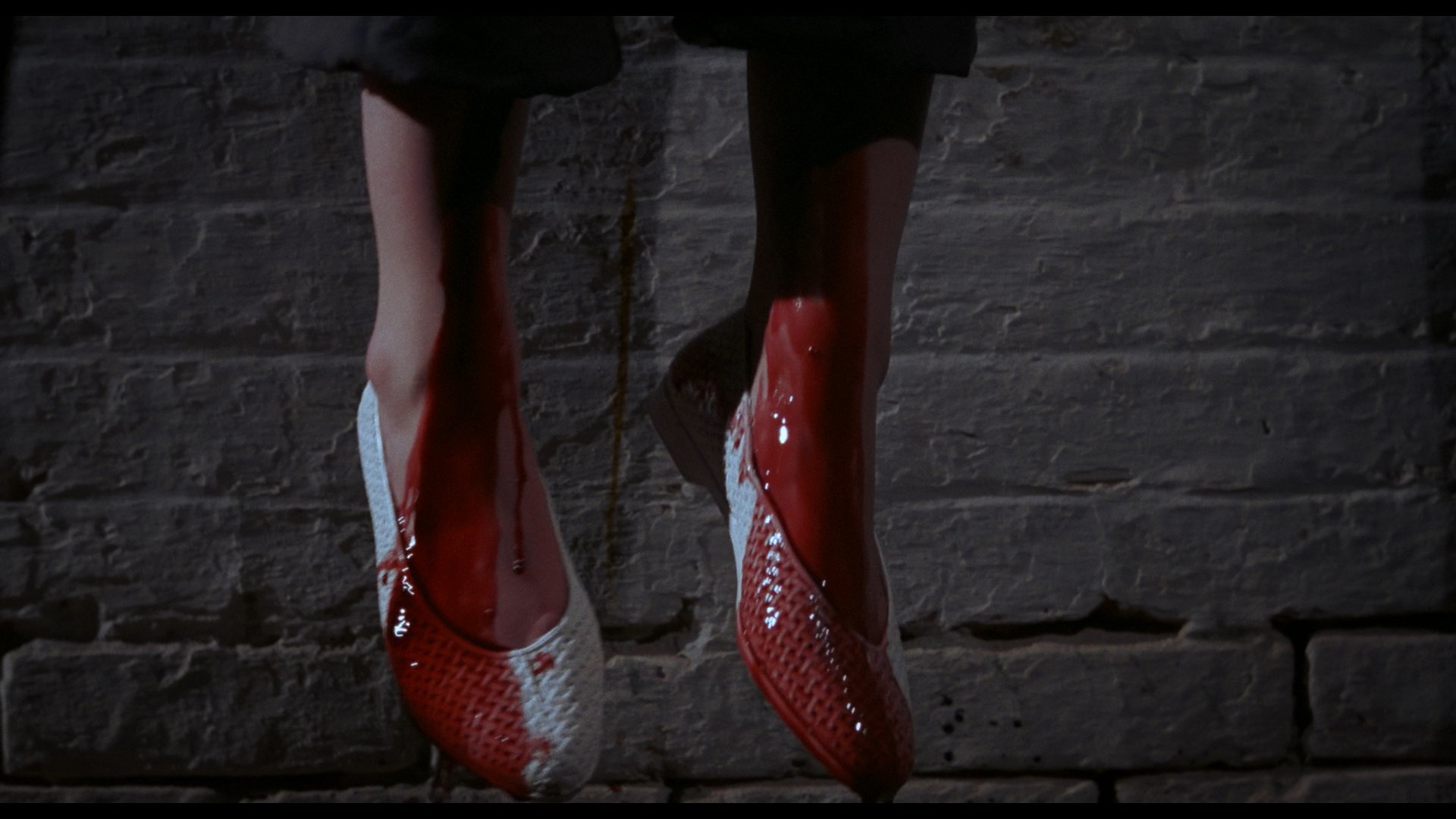 the film no favors at all. Fortunately you can toss any of those editions away thanks to the 2021 Blu-ray from Vinegar Syndrome, which features a limited edition slipcover and a wildly inaccurate plot synopsis. The new 2K scan from the 35mm original camera negative is a tremendous improvement over anything we've had before, finally bringing out the fun blue-colored lighting and little details in the darker scenes that were completely obscured before. As with the other VS Troma titles, it truly looks like a different and much better film here. The English DTS-HD MA 2.0 mono track also sounds great throughout with no significant issues, and optional English SDH subtitles are provided. Two audio commentaries are included, a solo one with writer-director-producer John P. Finegan (who tends to go quiet a lot since he's by himself), and a second with editor-assistant director Tom Rondinella and second assistant camera/second assistant director Bill Pace. There's also a new making-of featurette, "28 Seconds of Violence" (29m40s), featuring Finegan, Rondinella, Pace, Cosimano, and sound designer (and composer) John Hodian. You get understandable overlap between the three at times but they're all worth checking out as you get to find out all about the four-week shoot in Philadelphia, the back story behind the house and its art holdings (as well as the owner, who appears in a one-scene role), the dialogue scene rewritten by an actor that got a positive critical response, thoughts on the Troma revisions versus the "classy" original intentions, and plenty more.