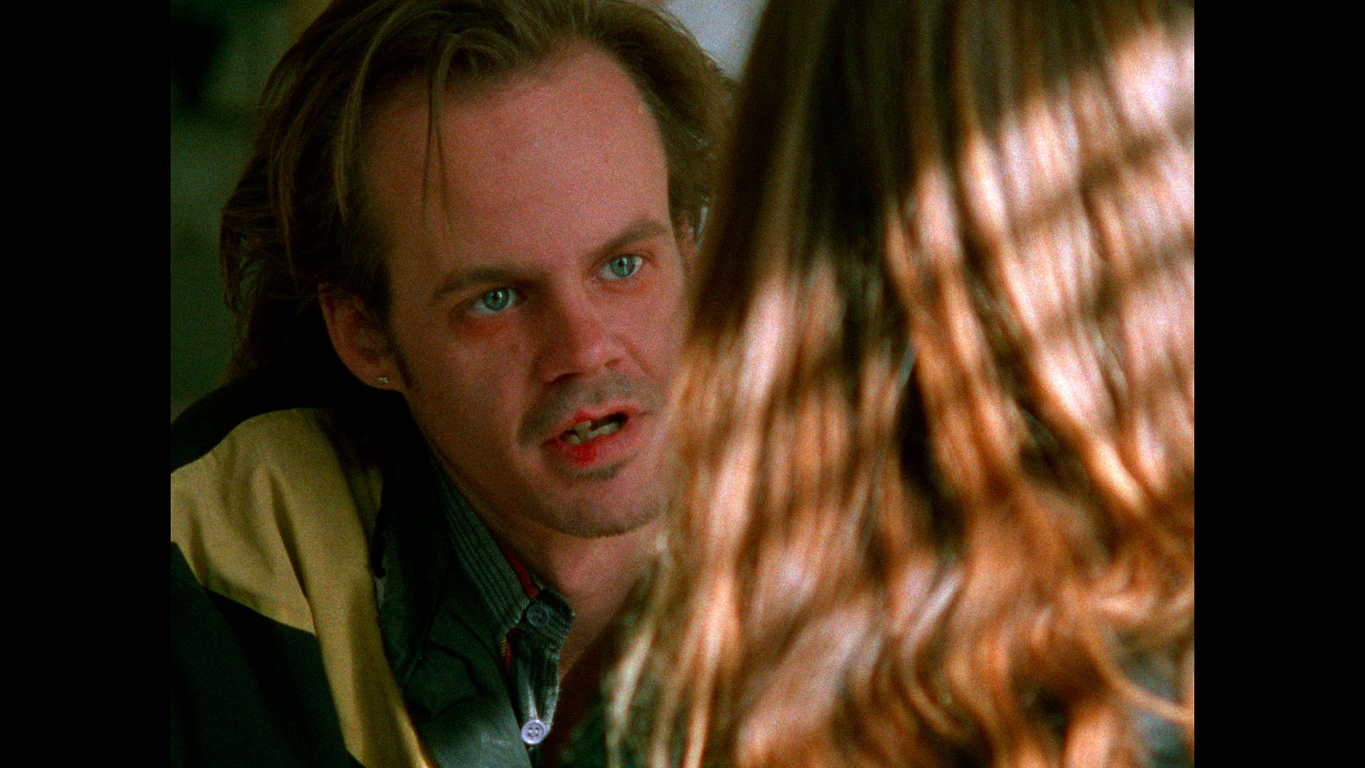 Also in the Vinegar Syndrome set making its UHD debut with a Blu-ray as well is Fessenden's second feature, the far more widely seen Habit, his take on vampirism made in 1994 but not really released until 1996 after some festival play. Again shot in 16mm and based on his student film (whose year lands somewhere between 1979 and 1982), it starts off on Halloween in New York City as struggling alcoholic Sam (Fessenden himself) is wandering in something of a daze after the death of his architect father and being dumped by his girlfriend. At a party that night he meets Anna (Snaider), who approaches him after he leaves and initiates a dark, tortured, sexual relationship as she infects him with a need to consume blood. While his ex and friends become concerned, Sam is consumed with his transformation and tries to shake the ghosts that are haunting him.