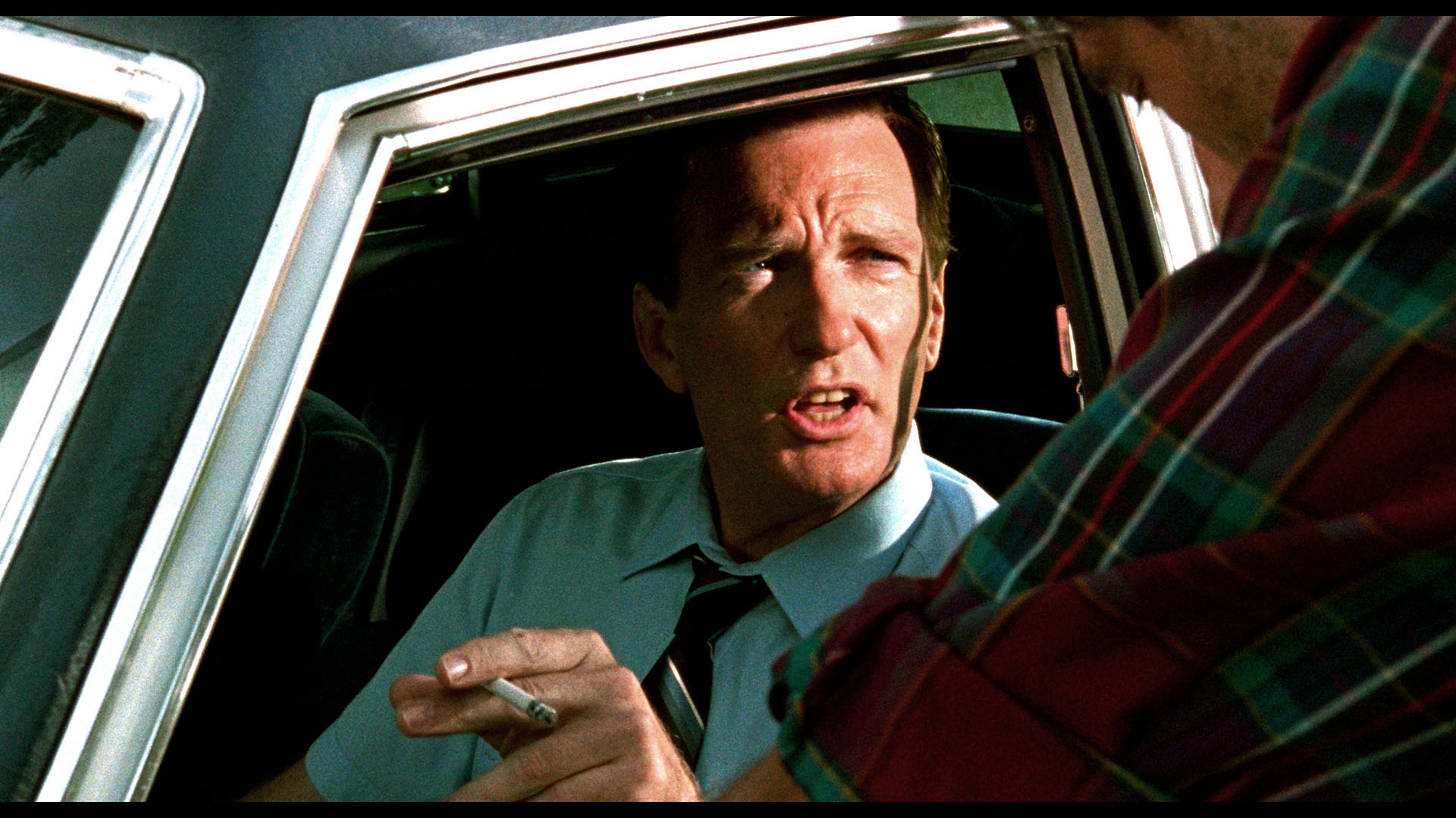The Vinegar Syndrome UHD and Blu-ray upgrade looks even better with some dynamic color schemes on display (especially thanks to that Dolby Vision again on the UHD), and here it also fixes a small but annoying element of the previous scan during which transitions from night to daytime (or vice versa) didn't time correctly for a few frames; see the third frame grab comparison below for one glaring example during a morning shot. Again the DTS-HD MA 5.1 and 2.0 tracks are here and sound great, with SDH subs, and the earlier Fessenden track is included. Here he turns up again for a new track
