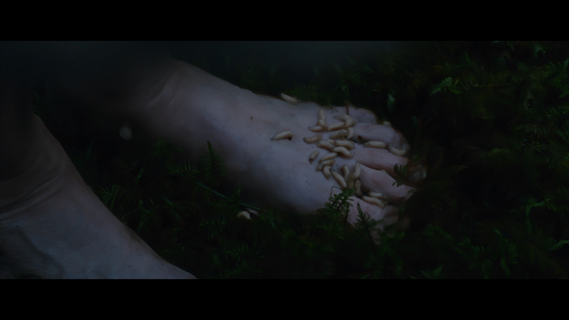 audio commentary can be played as one stream or divided into four sections totaling 34m35s (with some interesting insight into some of the symbolism and themes he was shooting for), while a deleted scene (2m38s) also features optional commentary. A very low-key MMMD music video, the theatrical trailer, and a bonus Feigelfeld modern-day short film, "Interferenz" (48m33s), which features more dialogue than the entire main feature, are also included along with bonus trailers for Summer of Fear, Penance, and Alleluia.