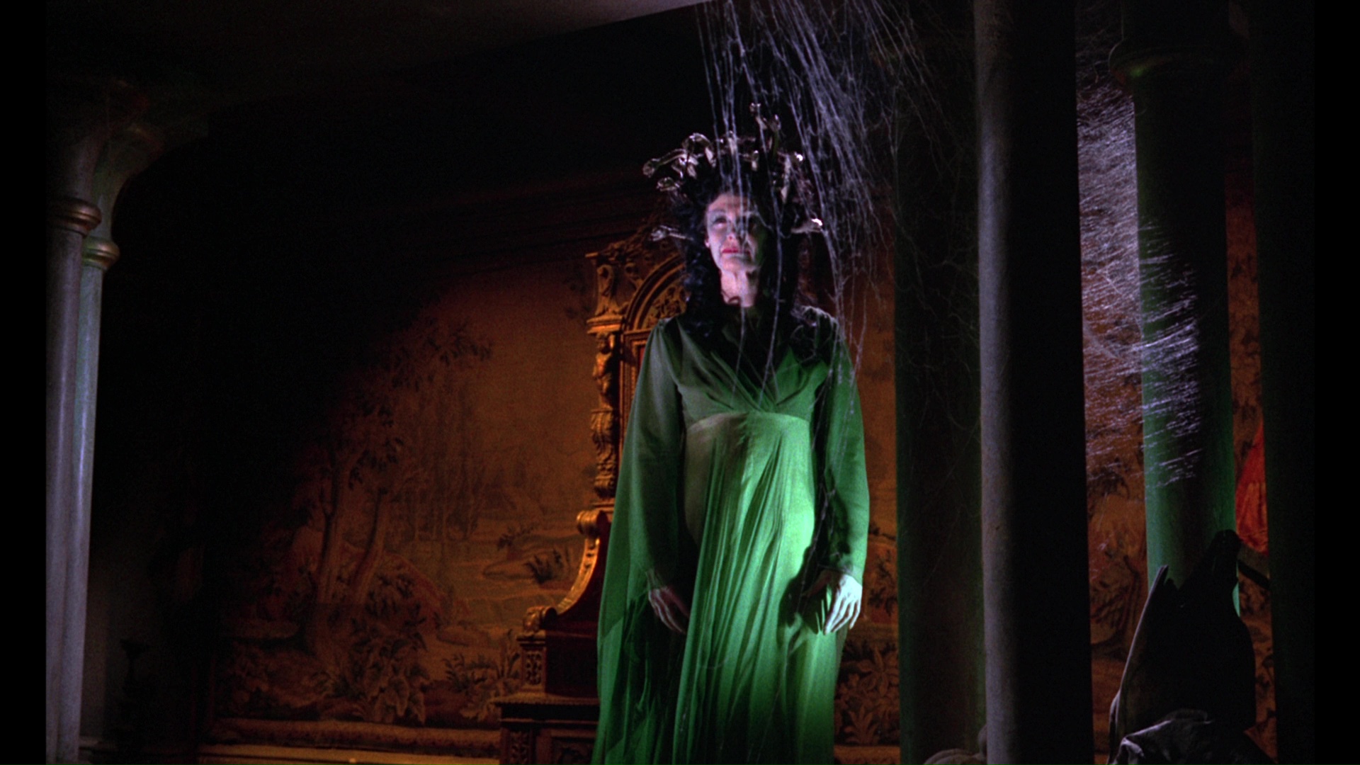 features more than enough mood and visual panache to overcome what would be crippling shortcomings in other horror films (mainly some famously inadequate gorgon effects in the final scenes and a plot that doesn't always make a ton of sense). The fairy tale aspects have been frequently noted over the years, and with good reason; along with Brides of Dracula and Kiss of the Vampire, it has one of the most potent depictions of an otherworldly European village suffocating under the forces of darkness.