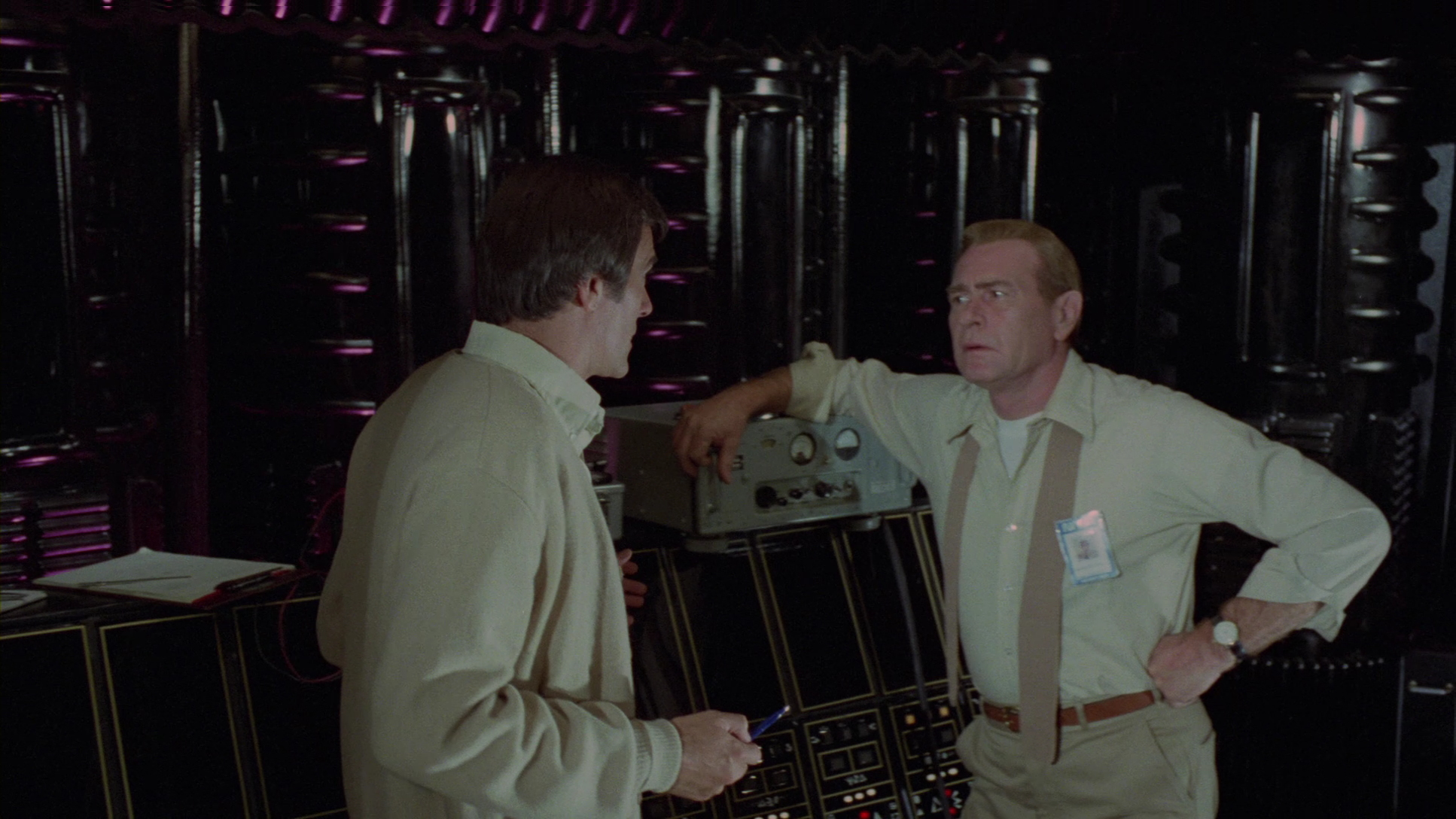 He's likable enough though and manages to soldier through the proceedings looking stern and serious, while it's always fun to see Vaughn do his evil rich guy routine (apparently warming up for its ridiculous apotheosis in Superman III). The TV feels extends behind the camera, too, including screenwriter Ken Pettus (who cuts his teeth on shows like The Green Hornet and The Wild, Wild West) and Boogens director James L. Conway, already an old hand at the Sunn speculative game. Keep an eye on that supporting cast, too, including turns by William Schallert (the dad from The Patty Duke Show) just before he became a staple in Joe Dante movies, and a young Stuart Pankin, who had a more typical comic role the same year in The Hollywood Knights. As with other Sunn titles held in the Republic library (which then passed to Paramount), Hangar 18 has been kept in fine shape over the years and makes the leap to bare bones Blu-ray and DVD with a transfer about as good as one could hope. It's a fairly flat-looking film, of course, but there are some occasional blasts of colorful lighting to perk things up that didn't register in previous transfers at all. There's really nothing to complain about here at all, and fans should be pleased to finally toss their old VHS copies. The DTS-HD mono audio also sounds fine, pointing out yet again that it's shame we never had a soundtrack release for the solid score by John Cacavas (Horror Express, The Satanic Rites of Dracula).