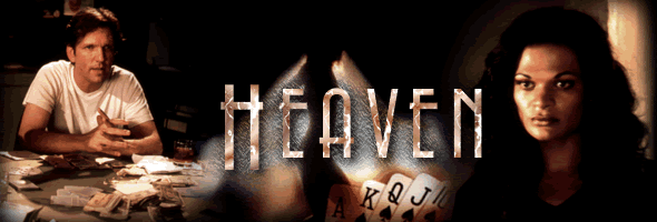 Robert Marling (Martin Donovan), an architect, has moved out from his estranged wife, Jennifer (Dark Shadows' Joanna Going), to an isolated apartment where he spends his nights gambling at a local club with the brutish Stanner (Richard Schiff). Meanwhile Jennifer is fighting for sole custody of her and Robert's child, Sean, and has begun an affair with the couple's slimy therapist (Patrick Malahide). One night after a hefty win, Robert stumbles into an alleyway and inadvertently stops two thugs from beating up Heaven (Danny Edwards), a psychic transvestite stripper (yes, you read that correctly) at Stanner's club. In return, Heaven strikes up a tender friendship with Robert and offers him some helpful advice on the card game the following evening. Unfortunately, Heaven's visions In many ways Heaven picks up where The Ugly left off, telling a similarly fragmented narrative related with scenes frequently cut into each other and out of sequence. While this approach could easily become a confusing stunt in lesser hands, the effect here is often devastating as the viewer begins to simulate Heaven's own precognitive abilities and piece together the various characters and events into an emotionally resonant whole. Also like The Ugly, Reynolds adopts skillful color coding to provoke a separate response for each character and location: the unearthly blue walls crowned with flickering lights in the club, the suffused gold of a posh restaurant, the lime green decor of an apartment. Though impressive, the visual panache only serves the story instead of overwhelming it, a welcome change from the "style for style's sake" method. The performers are all well up to the demands of the intricate script, with Hal Hartley regular Donovan in particular delivering yet another in his run of outstanding performances. His sudden joyous outburst after his big win is worth the price of admission alone. In the tricky role of Heaven, Edwards mixes fear and defiance equally well, preventing the character from becoming an echo of Dil in The Crying Game. In fact, despite the strong violence throughout (and particularly during the climax), the cumulative effect of Heaven is a compassionate, unusually sensitive portrait of well-meaning, flawed people who deserve to have fate deal them a good hand.
