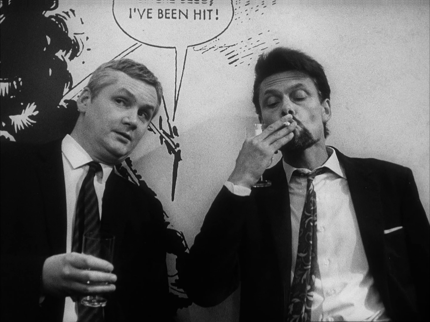 as Britain's own early spin on the growing market for "naughty" cinematic fare. Busy composer John Scott (billed here as Patrick John Scott) got his feature start here as well with his groovy musical accompaniment, which he followed with titles as diverse as A Study in Terror, Greystoke, Yor, Shoot to Kill, and The Final Countdown, along with a few more Warren titles. Then there's the visual scheme, including the monochromatic pop art on the walls of Bernie's pad and some wonderfully kitschy costumes for most of the female cast. Modungo makes for a pretty unconvincing and hopelessly stupid se
