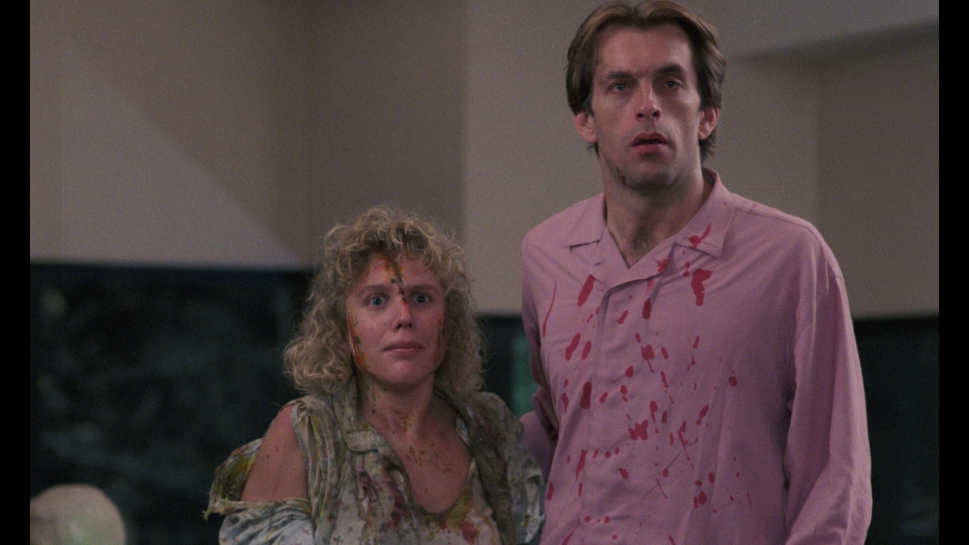 outrageous final ten minutes. Arana (who also starred in Bava's Body Puzzle) and Brandon (from Bava's Delirium) are clearly having a lot of fun here bouncing off each other, and the house itself with a central circular hallway is a terrific setting for what amounts to a five-character chamber piece. Several names behind the camera make big contributions here with Sergio Stivaletti unleashing some fun makeup effects (especially in the fakeout opening scene and the big finale) and Simon Boswell (Demons 2) brought on again to handle scoring duties for all four films in the series. You also get a nice cameo from The Ogre's Virginia Bryant early on as a journalist, while André does fine in a mostly one-note part and Minervini goes very, very hammy for reasons that don't become clear until halfway through. The one bum note is Pitti cast in a role clearly written for someone at least a decade younger, but that's easy to overlook.
