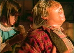Wildly erratic, the transfer for The House that Screamed depends entirely on the lighting used from scene to scene. The opening sequence, a wildly gratuitous shower scene followed by a hamfisted crawl explaining the role of ghosts in the year 2000, does not bode well thanks to an abundance of noise and grain. Luckily the video quality smooths out somewhat afterwards, though the film never looks really polished or slick. It's at least watchable, and the stereo sound is well rendered despite some occasionally muffled dialogue. The DVD extras run almost as long as the feature itself, while the Polonias turn up for a commentary track as well. The discussion is fairly dry, explaining why certain elements were filmed and included (with lip service given to the obligatory nude scenes). Trailers include one for this film, two alternate spots for the sequel (Hellgate), and one for the Polonias' Dweller. Then we get to the real meat of the disc: an 18-minute "making of" documentary consisting mainly of talking heads (Dennis and the Polinias) discussing the film, a 14-minute reel of raw footage from the last day of shooting, and more questionably, a 15-minute tour of the house that could have probably been wrapped up in about a third of the time. The first two featurettes are quite interesting, however, and Dennis in particular turns out to have some interesting observations about the filming and his character. Last up is a still gallery and a blooper reel (mostly clowing around and outtakes) accompanied by music snippets.
