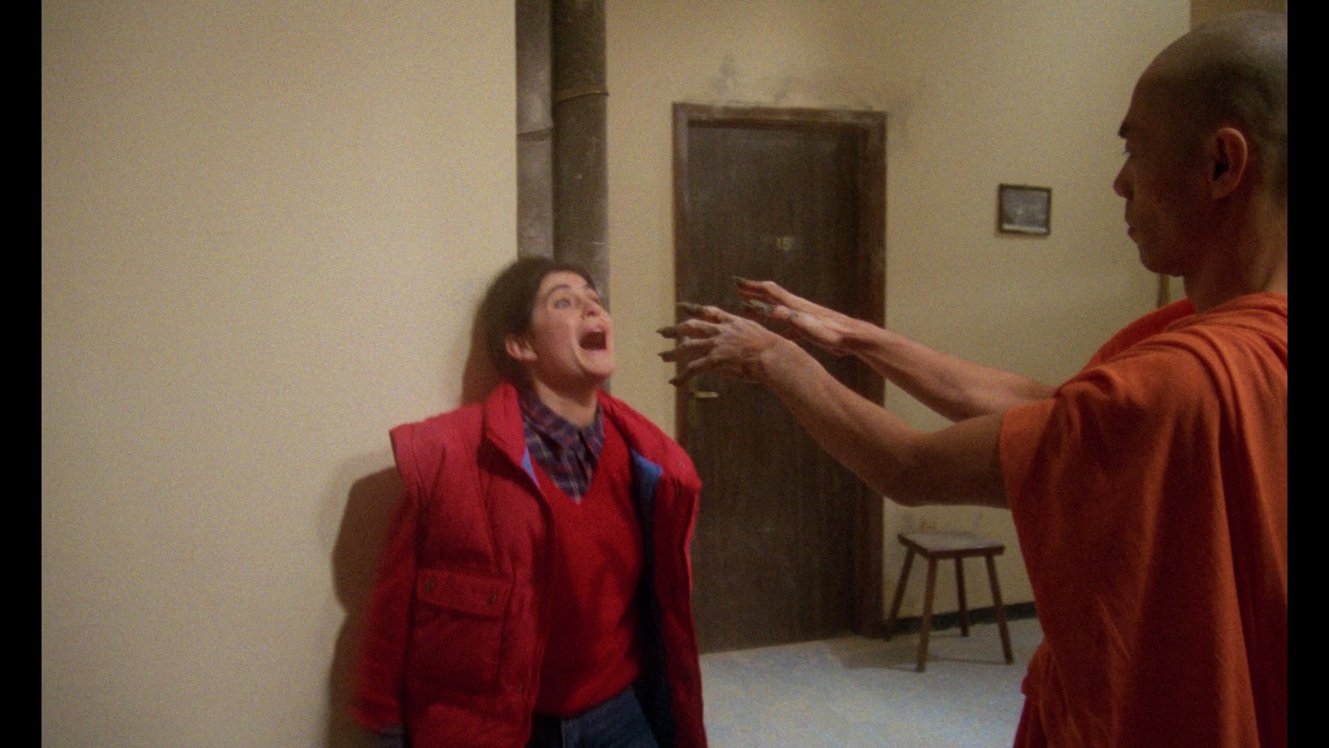 The archival interviews ported over here include all four of the ones from the Shriek Show release as well as a 6m48s one with Monreale. You also get a fascinating 71m25s(!) reel of VHS-sourced production footage (and auditions?) featuring off-the-cuff interviews with many of the principals about their backgrounds. Again you get a soundtrack CD (20 tracks) premiering Tempera's score in excellent
