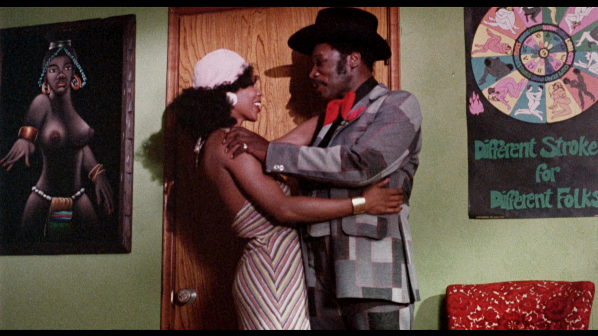 Fortunately the longest and most correctly sequenced version of the film can be seen on Vinegar Syndrome's dual-format Blu-ray and DVD edition in 2016, and as with Dolemite, this marks the first fresh transfer it's had in ages. Despite the super low production values, the film looks very punchy with a vibrant '70s palette (just check out the colors of the walls) and some heavy, stylized red lighting in several scenes. The actual "35mm vault materials" here are in somewhat rougher shape at times than the first film, with at least one bumpy reel change and some significant debris during the climax; however, it's such a massive improvement over anything we've had before that it's unlikely anyone will mind. The DTS-HD MA mono audio on the Blu-ray sounds pretty energetic, with the funky main titles (featuring some charming hand-drawn lettering) really kicking things off in style. Optional English subtitles are also provided.