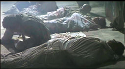 Shot in what looks like a video process then either transferred to film or digitally filtered to give it a film look, Junk will probably never look like a million bucks. The anamorphic European DVDs have a slight edge over the flat American disc, which appears to be taken from the original, preexisting Japanese video master (complete with permanent Japanese subtitles during the English dialogue scenes). Otherwise it's optional English subtitles with Japanese dialogue all the way. Surround audio is fairly limited, mostly to gunshots and ambient music, though some good atmospheric mixing comes into play now and then, particularly the Fulci-style scenes of zombies rising from body bags on the floor and dining casually on one of their victims. The U.S. disc gains a moderate edge in terms of extras, thanks to the original trailer, a batch of other Unearthed previews, and a still gallery.