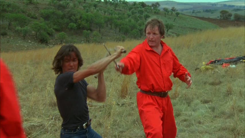 than anyone's seen it outside of a movie theater. The colors are now back to their original early '80s intensity, the film elements are in great shape, and there's really nothing to complain about at all unless you have an aversion to phony facial hair. The mono audio sounds nice and clean as well, and there's even an isolated music track for good measure. As for extras, first up you get a 42-minute phone interview with Ryan (which plays commentary-style with the feature) in which he speaks with his natural South African accent about working on both films, his relationships with Kriel and Kantor, the ins and outs of shooting in his country, and the challenges of intensely physical action sequences. Then the aforementioned Crowther appears for an on-camera interview (23m45s) in which he chats about pitching the film, the WGA's objection to his screen credit, and some of his other films like The Evil that Men Do. Two favorite sound bites: "Nobody really wants character development" and "Go look for subtext... it's a parable for everything that's wrong with the world today, especially vicious dictators." Finally the disc closes out with the original trailer and bonus ones for Puppet on a Chain, The Last Grenade, Joysticks, Death Ship, Mortuary, and Malibu High. In 2017, Scorpion gave the film its inevitable Blu-ray upgrade, with a fresh scan that looks even better with extremely sharp detail and fresh colors; the DTS-HD MA English mono track also sounds clean and clear. The audio interview, featurette, trailer, and isolated music track are carried over here, along with bonus trailers for Force: Five, The Salamander, Barbarosa, and Firepower.SCORPION RELEASING BLU-RAY