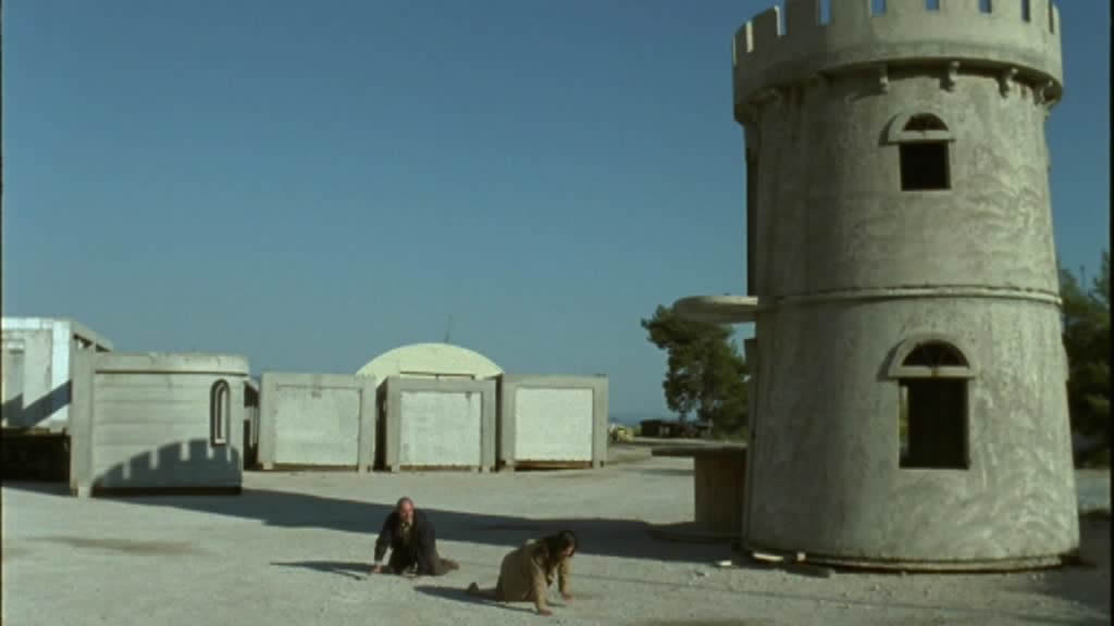 The title refers to the desolate Greek village where meet our three protagonists: a cop (Xikominos) who acts as a sort of amateur director and indulges in a taste for trashy Russian immigrants, a photo clerk (Alps' Servetalis) who acts as a cinematographer for the cop, and a maid (Randou) who enacts violent scenarios against herself both in private for rehearsal and in front of their camera. The purpose is ostensibly to reenact crimes as short films to help solve them, but in practice it's really a means to spin the characters around as the clerk becomes infatuated with and protective of the increasingly self-harming maid.