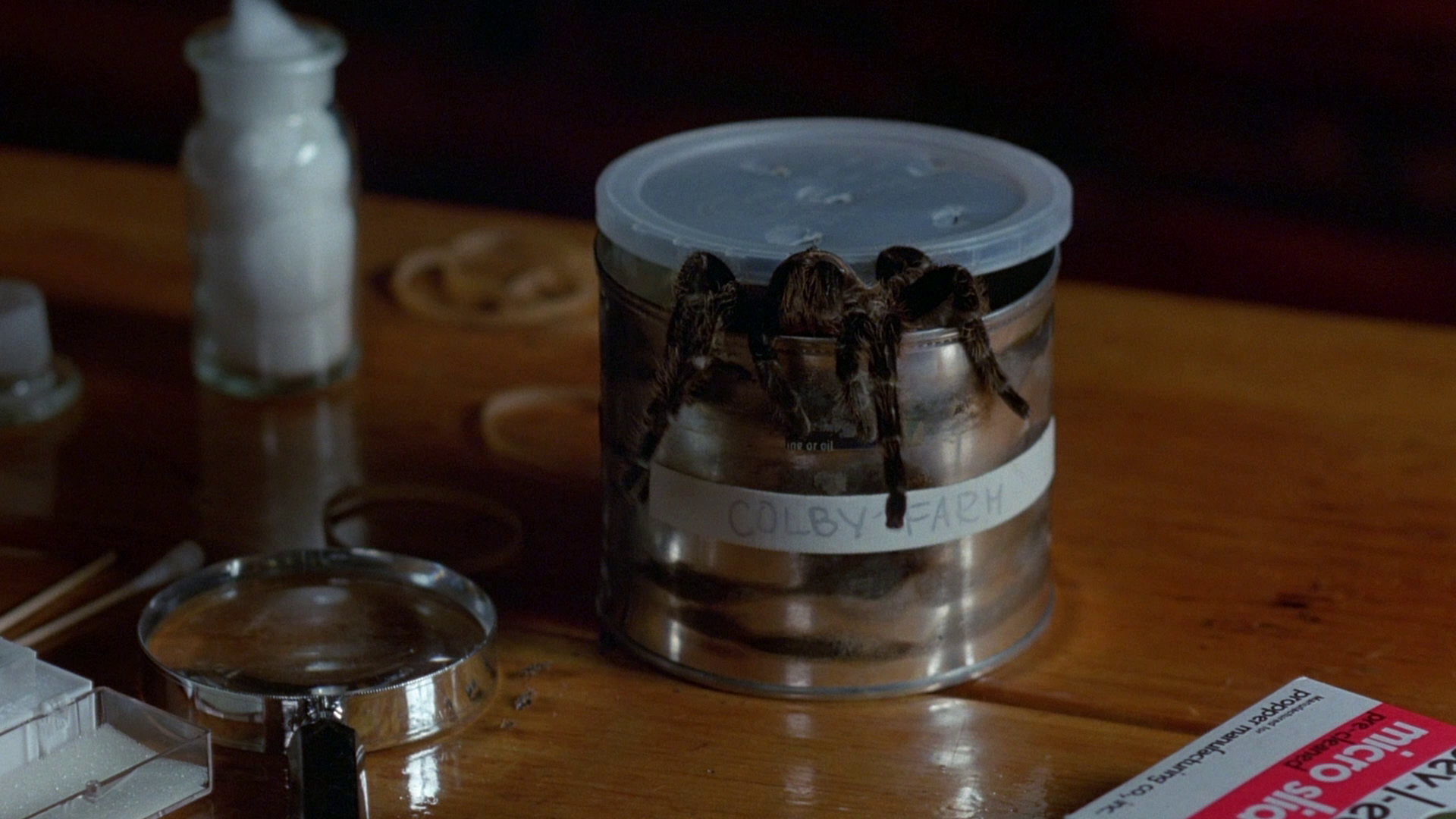 full frame transfer and zero extras. Shout! Factory stepped up with the film's first special edition in 2010 on DVD, featuring an assortment of extras partially commissioned through Code Red including a fun audio commentary with Cardos, producer Igo Kantor, spider wrangler Jim Brockett and cinematographer John Morrill, moderated by Lee Christian and Scott Spiegel. You get a lot of spider stories here of course, including notes that they did their best to not pulverize very many of them (though some get visibly run over and stomped, unfortunately), as well as tales of Shatner and Bolling working with their furry co-stars. There's also a separate Shatner interview (16m35s) that'll make you sad he never got around to doing the planned sequel, a really fun piece with Brockett and Christian (12m23s) showing off some real-life varieties of tarantulas with very different personalities, a quick chat with co-writer Stephen Lodge (4m40s), a reel of Super 8 behind-the-scenes footage (17m18s), the theatrical trailer, and a gallery including stills and pressbook material.