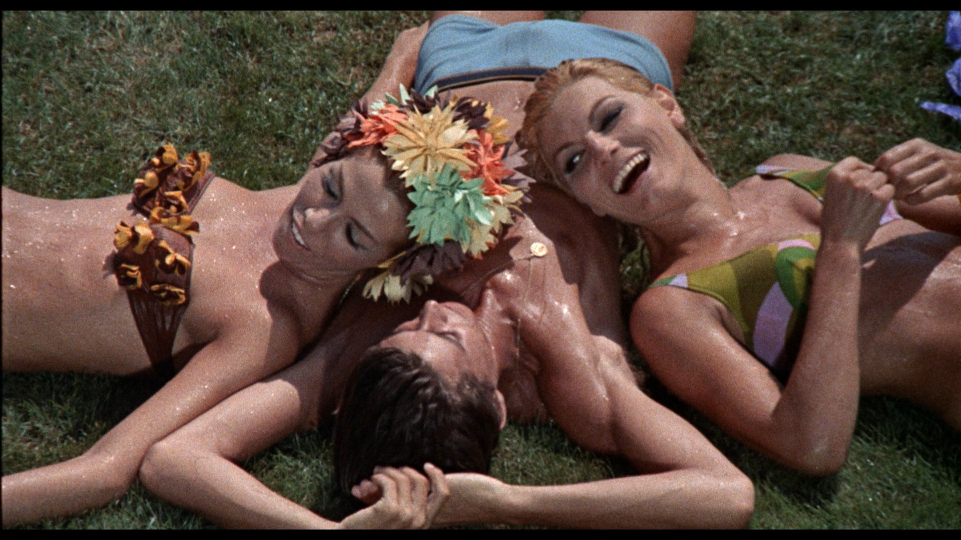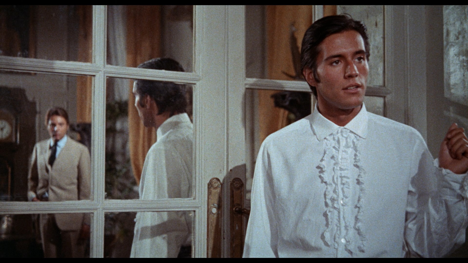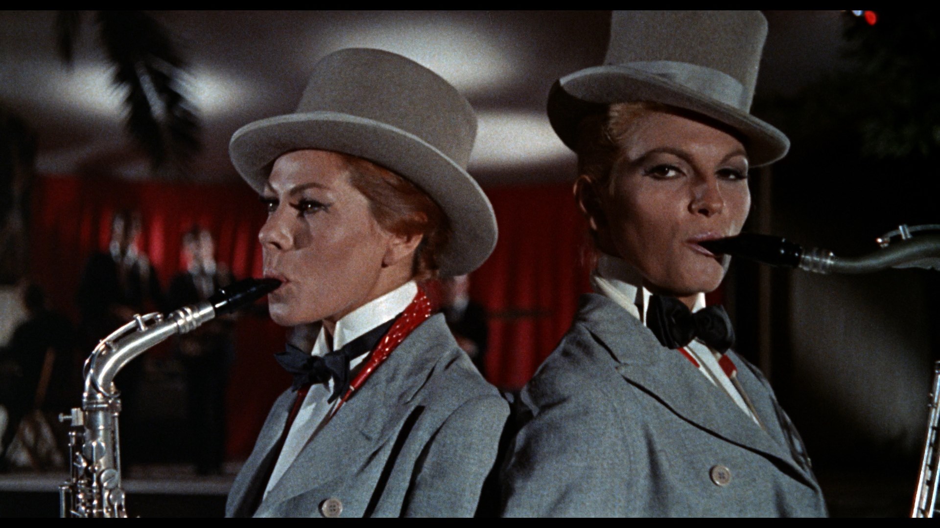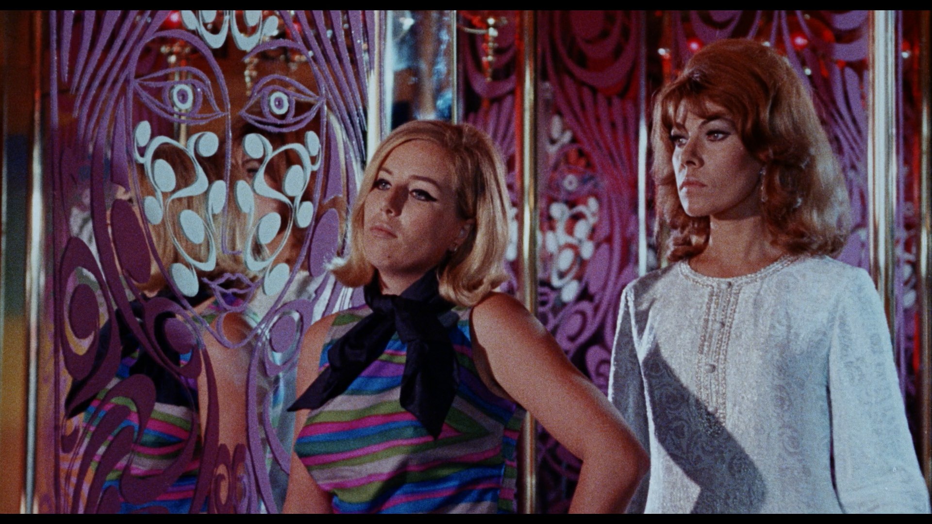 The sex and nudity quotient of both films is fairly mild compared to modern erotic thrillers, but the dizzy atmosphere of carefree sexuality that spins through both films makes them incredibly entertaining and delightful if you're in the right frame of mind. The eye-popping production design is really the star here, with a gaudy array of clothes and outrageous nightclubs providing the backdrops which hold these crazy-quilt stories together. Whether taking time for the two heroines to have a saxophone jazz duet or deglamorizing them with big glasses and clothespins on their noses, the films never take themselves too seriously and certainly never bore. The catchy music by Jerry Van Rooyen (a Franco regular) is a major asset, too.