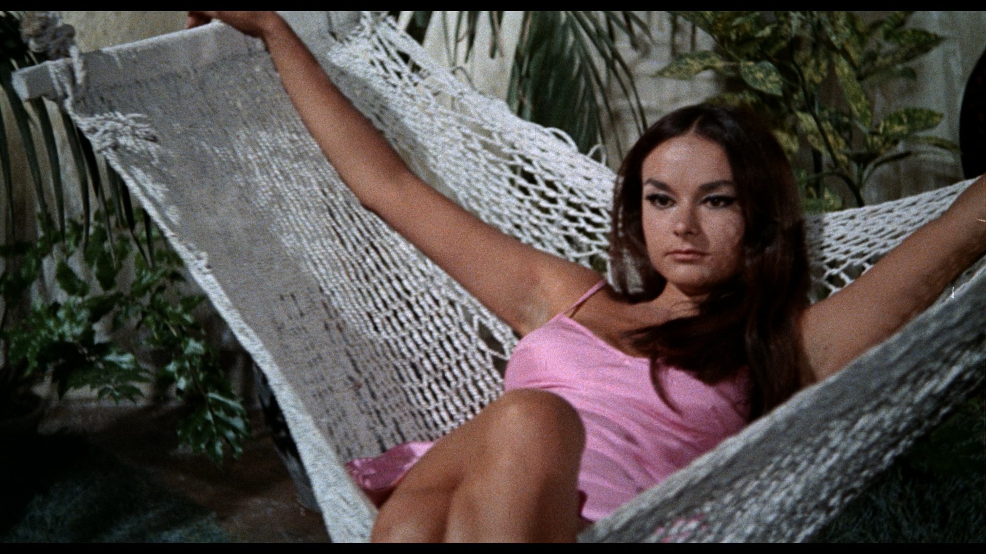 Red Lips Diaries" (46m8s), a new appraisal of the films by the always welcome Stephen Thrower who covers the influence of The Avengers, the backgrounds of the major actors, the shortcomings of the English dubs, Franco's affinity for sudden tonal shifts ("just like real life"), and lots more. A real treat to see here is the inclusion of the alternate Spanish versions of both films, sourced from tape with new English translated SDH subtitles (which means you're stuck with things like "[discordant jazz music]" on screen most of the time). It's fascinating to compare these to their more familiar versions as they run substantially longer (see running times above), dropping the nudity and more salacious elements while adding a lot more connective plot tissue, travelogue footage, and character beats. They also have markedly different title sequences and music, so it's great to have them preserved here for posterity. Also included are video trailers and extensive still galleries for both films.