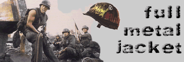 Starring Matthew Modine, Adam Baldwin, R. Lee Ermey, Vincent d'Onofrio, Dorian Harewood, Arliss Howard / Music by Wendy Carlos / Written by Gustav Hasford, Michael Herr & Stanley Kubrick / Music by Abigail Mead (Vivian Kubrick) / Cinematography by Douglas Milsome