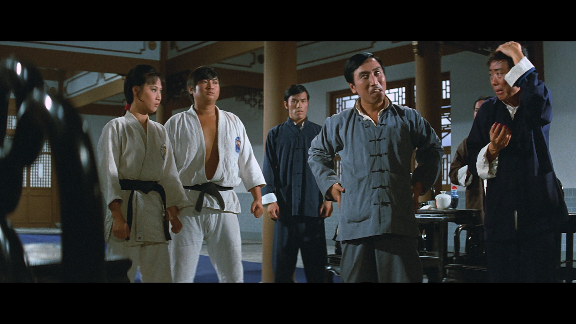 Both of these Golden Harvest productions have been readily available on home video in various editions over the years including Hong Kong DVDs from Fortune Star and a 2014 double feature DVD from Shout! Factory. The Blu-ray editions (which are identical in the U.S. and U.K. apart from the packaging, company logos, and menus) easily best their predecessors with beautiful transfers that make the most out of colorful albeit occasionally inconsistent elements. Each film comes with LPCM 1.0 Mandarin audio with optional, newly translated English subtitles, plus the entertaining English dubs which often simplify the story and characters to an insane degree. Hapkido also tosses in the alternate U.S. English dub and the2006 5.1 DVD dub for good measure. Lady Whirlwind sports no less than three(!) audio commentaries: Frank Djeng and Robert "Bobby" Samuels, Djeng and Michael Worth, and Samm Deighan solo. The Djeng-Samuels and Djeng-Worth also provide commentaries for Hapkido, and each combo works well as a double feature commentary running